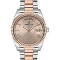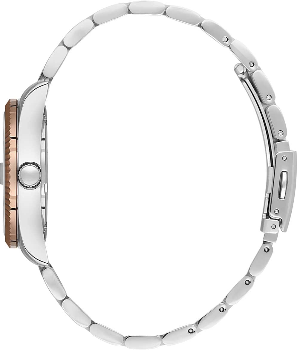 Женские кварцевые часы Daniel Klein — это идеальный повседневный аксессуар для стильной девушки. Корпус диаметром 35 мм выполнен из нержавеющей стали. БезельБезельВнешний ободок, закрепляющий стекло. В спортивных часах так называется поворотное кольцо с делениями на циферблате, выполняет роль таймера – замеряет отрезки времени на шкале. Неподвижный безель – элемент декора. Однонаправленно вращающийся безель на дайверских часах позволяет фиксировать моменты погружения и выныривания на поверхность. с IP-покрытиемIP-покрытиеМетод ионного напыления. Демонстрирует повышенную устойчивость к истиранию, окислению и химическим веществам. Под воздействием высокого давления и температуры около 1500°C молекулы металла надёжно соединяются с частицами корпуса часов. рифлёный. Циферблат золотистого цвета выполнен по технологии Sunray («солнечные лучи») и оформлен штрихами, римскими цифрами и стрелками. Окошко дня недели расположено в положении 12 часов, окошко даты — в положении 3 часов и оснащено увеличительным стеклом (Cyclops). Стрелки с люминесцентным покрытиемЛюминесцентное покрытиеПозволяет считывать показания времени в темноте. Производители наносят на стрелки, часовые индексы, безель или поверхность циферблата светонакопительный состав, дающий холодное свечение., обеспечивающим хорошую читаемость в темноте. Циферблат защищён минеральным стекломМинеральное стеклоМинеральное стекло представляет собой искусственно выращенный минерал кварца. Такое стекло отличается особой устойчивостью к повреждениям и царапинам. Уступает по некоторым качествам сапфировому стеклу.. Часы оснащены стальным браслетом с частичным IP-покрытиемIP-покрытиеМетод ионного напыления. Демонстрирует повышенную устойчивость к истиранию, окислению и химическим веществам. Под воздействием высокого давления и температуры около 1500°C молекулы металла надёжно соединяются с частицами корпуса часов. на раскладной застёжкеРаскладная застёжкаТакой тип застёжки используется только на браслетах из металла. Она никогда не раскрывается полностью, происходит разделение на 2 и более частей. Раскладывающая застёжка снизит вероятность потери часов к минимуму.. Водонепроницаемость 30 м позволяет использовать часы в повседневных условиях. Идеальный выбор для тех, кто ценит турецкое качество и элегантный дизайн.