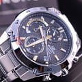 Стильные японские наручные кварцевые мужские часы. Круглый корпус и браслет часов выполнены из стали с антикоррозийными свойствами. Черный циферблат выполнен под карбон. Водонепроницаемость 10 ATM. Минеральное стекло, устойчивое к появлению царапин. Часы оснащены функцией хронографа.