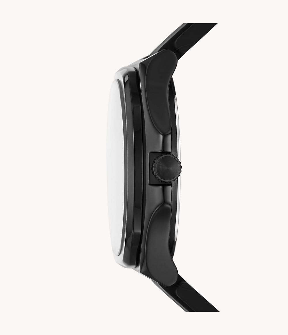 Мужские наручные часы с минеральным стекломМинеральное стеклоМинеральное стекло представляет собой искусственно выращенный минерал кварца. Такое стекло отличается особой устойчивостью к повреждениям и царапинам. Уступает по некоторым качествам сапфировому стеклу. Fossil Evanston BQ2769, кварцевый механизм с высокой точностью. Класс водозащиты: 50 метров, позволит защитить корпус от случайных брызг или капель дождя. Корпус часов изготовлен из стали с IP-покрытиемIP-покрытиеМетод ионного напыления. Демонстрирует повышенную устойчивость к истиранию, окислению и химическим веществам. Под воздействием высокого давления и температуры около 1500°C молекулы металла надёжно соединяются с частицами корпуса часов.. Силиконовый ремешок на стандартной застёжке. Стрелки и метки с люминесцентным покрытиемЛюминесцентное покрытиеПозволяет считывать показания времени в темноте. Производители наносят на стрелки, часовые индексы, безель или поверхность циферблата светонакопительный состав, дающий холодное свечение..