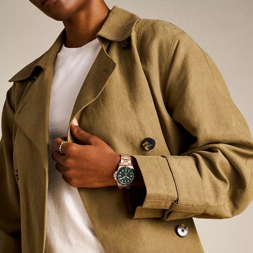 Женские часы Fossil Blue Dive ES5371 — это изящный и практичный аксессуар, который станет идеальным дополнением как для повседневных, так и для вечерних образов. Модель сочетает в себе элегантный дизайн и высокое качество, что делает её универсальным выбором для любой ситуации. Часы оснащены кварцевым механизмом, обеспечивающим точность и надёжность хода. Корпус и браслет выполнен из стали с розово-золотистым IP-покрытиемIP-покрытиеМетод ионного напыления. Демонстрирует повышенную устойчивость к истиранию, окислению и химическим веществам. Под воздействием высокого давления и температуры около 1500°C молекулы металла надёжно соединяются с частицами корпуса часов., что гарантирует долговечность и современный вид. А на вращающийся в одном направлении безельБезельВнешний ободок, закрепляющий стекло. В спортивных часах так называется поворотное кольцо с делениями на циферблате, выполняет роль таймера – замеряет отрезки времени на шкале. Неподвижный безель – элемент декора. Однонаправленно вращающийся безель на дайверских часах позволяет фиксировать моменты погружения и выныривания на поверхность. нанесено зеленое IP-покрытиемIP-покрытиеМетод ионного напыления. Демонстрирует повышенную устойчивость к истиранию, окислению и химическим веществам. Под воздействием высокого давления и температуры около 1500°C молекулы металла надёжно соединяются с частицами корпуса часов.. Минеральное стеклоМинеральное стеклоМинеральное стекло представляет собой искусственно выращенный минерал кварца. Такое стекло отличается особой устойчивостью к повреждениям и царапинам. Уступает по некоторым качествам сапфировому стеклу. защищает циферблат от царапин и механических повреждений, а рифленая заводная головка и браслет с раскладной застёжкойРаскладная застёжкаТакой тип застёжки используется только на браслетах из металла. Она никогда не раскрывается полностью, происходит разделение на 2 и более частей. Раскладывающая застёжка снизит вероятность потери часов к минимуму. обеспечивают удобство и комфорт в ношении. Стрелки с люминесцентным покрытиемЛюминесцентное покрытиеПозволяет считывать показания времени в темноте. Производители наносят на стрелки, часовые индексы, безель или поверхность циферблата светонакопительный состав, дающий холодное свечение. позволяют легко считывать время даже в условиях низкой освещенности, а метки в виде штрихов и точек, инкрустированных кристаллами. Водозащита до 10 бар (100 метров) позволяет не только принимать душ, но и плавать, не снимая часы. Зеленый циферблат придает часам свежий и стильный вид. Международная гарантия от производителя на 24 месяца дает уверенность в качестве и надежности часов.