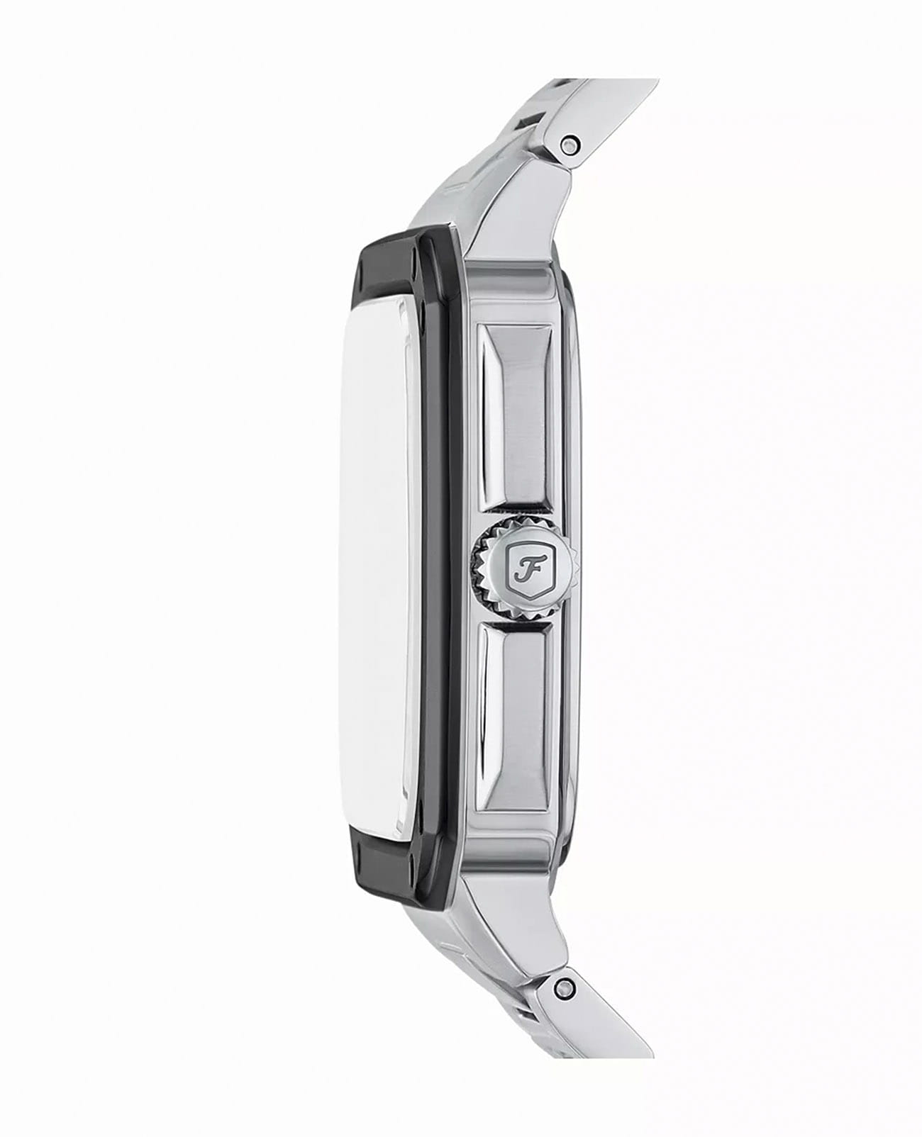 Мужские кварцевые часы Fossil — это стильный аксессуар с современным дизайном. Корпус квадратной формы размером 42 мм выполнен из нержавеющей стали. БезельБезельВнешний ободок, закрепляющий стекло. В спортивных часах так называется поворотное кольцо с делениями на циферблате, выполняет роль таймера – замеряет отрезки времени на шкале. Неподвижный безель – элемент декора. Однонаправленно вращающийся безель на дайверских часах позволяет фиксировать моменты погружения и выныривания на поверхность. с IP-покрытиемIP-покрытиеМетод ионного напыления. Демонстрирует повышенную устойчивость к истиранию, окислению и химическим веществам. Под воздействием высокого давления и температуры около 1500°C молекулы металла надёжно соединяются с частицами корпуса часов.. Циферблат чёрного цвета оформлен индексами и стрелками, включая центральную секундную стрелку. Окошко даты расположено в положении 6 часов. Циферблат защищён минеральным стекломМинеральное стеклоМинеральное стекло представляет собой искусственно выращенный минерал кварца. Такое стекло отличается особой устойчивостью к повреждениям и царапинам. Уступает по некоторым качествам сапфировому стеклу.. Часы оснащены стальным браслетом шириной 22 мм на раскладной застёжкеРаскладная застёжкаТакой тип застёжки используется только на браслетах из металла. Она никогда не раскрывается полностью, происходит разделение на 2 и более частей. Раскладывающая застёжка снизит вероятность потери часов к минимуму. типа клипса. Водонепроницаемость 50 м позволяет использовать часы в повседневных условиях. Идеальный выбор для тех, кто ценит американское качество и смелый дизайн.