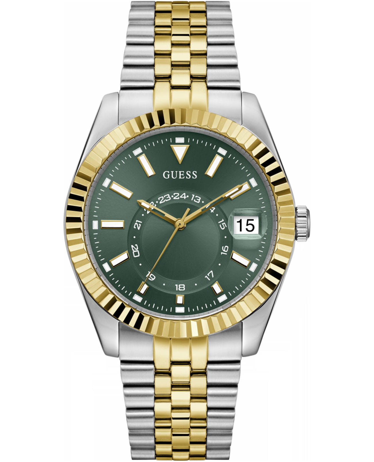 Мужские наручные часы Guess Dress Jaden GW0977G4 – это сочетание элегантности и современного стиля. Изысканные часы оснащены надежным кварцевым механизмом, который обеспечивает точность хода. Корпус часов выполнен из нержавеющей стали с безелемБезельВнешний ободок, закрепляющий стекло. В спортивных часах так называется поворотное кольцо с делениями на циферблате, выполняет роль таймера – замеряет отрезки времени на шкале. Неподвижный безель – элемент декора. Однонаправленно вращающийся безель на дайверских часах позволяет фиксировать моменты погружения и выныривания на поверхность. с IP-покрытиемIP-покрытиеМетод ионного напыления. Демонстрирует повышенную устойчивость к истиранию, окислению и химическим веществам. Под воздействием высокого давления и температуры около 1500°C молекулы металла надёжно соединяются с частицами корпуса часов. диаметром 42 мм и толщиной 11 мм, придающий модели особый характер. Циферблат оснащен метками в виде штрихов. Вынесенный циферблат с 24-х часовым указателем времени. Окошко даты в позиции 3 часов. Люминесцентное покрытиеЛюминесцентное покрытиеПозволяет считывать показания времени в темноте. Производители наносят на стрелки, часовые индексы, безель или поверхность циферблата светонакопительный состав, дающий холодное свечение. на стрелках и метках обеспечивает отличную видимость в темноте. Стильный стальной браслет с IP-покрытиемIP-покрытиеМетод ионного напыления. Демонстрирует повышенную устойчивость к истиранию, окислению и химическим веществам. Под воздействием высокого давления и температуры около 1500°C молекулы металла надёжно соединяются с частицами корпуса часов. с раскладной застежкойРаскладная застёжкаТакой тип застёжки используется только на браслетах из металла. Она никогда не раскрывается полностью, происходит разделение на 2 и более частей. Раскладывающая застёжка снизит вероятность потери часов к минимуму. гарантирует комфортное ношение и надежную фиксацию. Минеральное стеклоМинеральное стеклоМинеральное стекло представляет собой искусственно выращенный минерал кварца. Такое стекло отличается особой устойчивостью к повреждениям и царапинам. Уступает по некоторым качествам сапфировому стеклу. защищает циферблат от царапин, а водозащита 50WR предохраняет часы от случайных брызг и дождя. Эта модель станет отличным выбором для тех, кто ценит стиль и функциональность в одном аксессуаре.