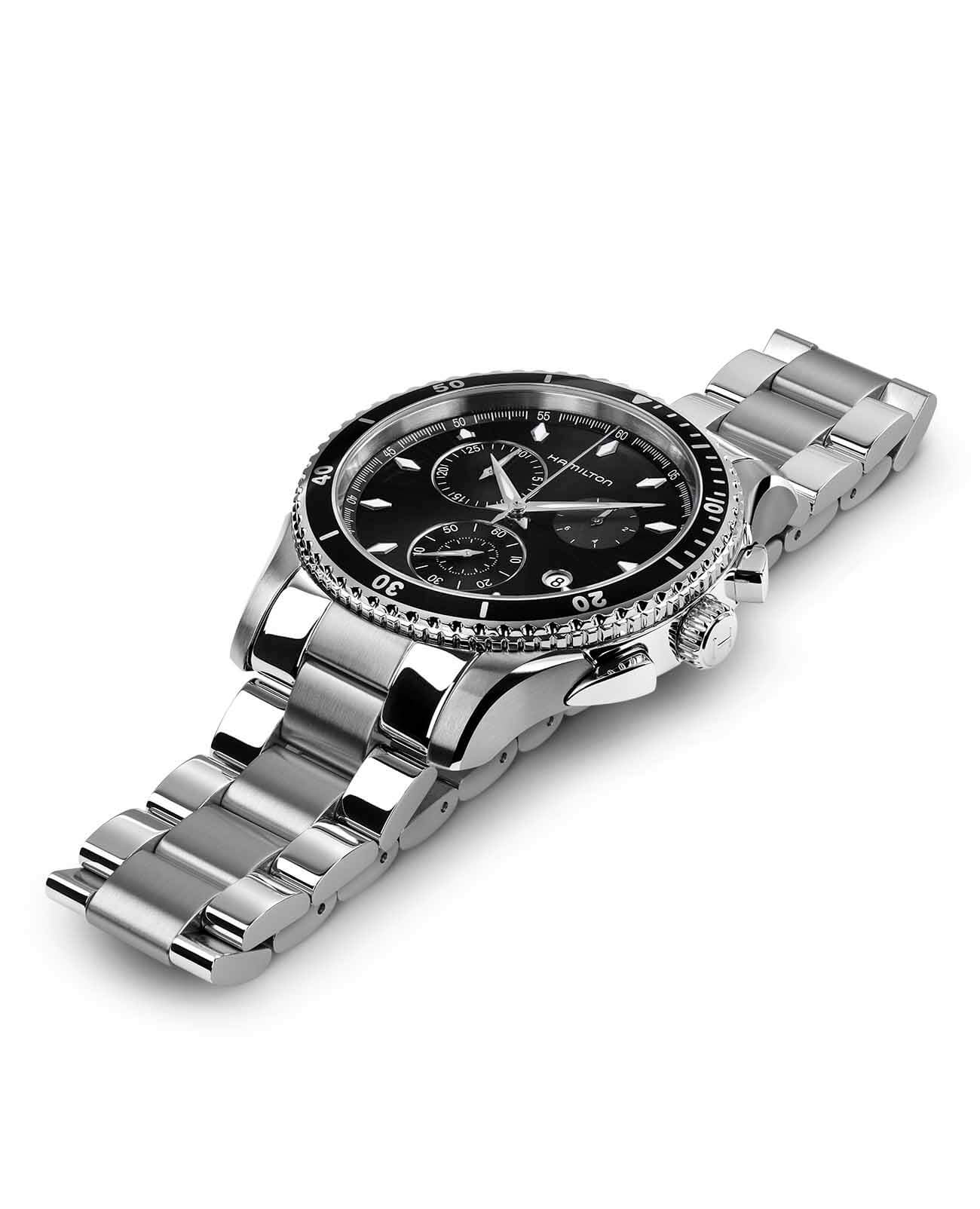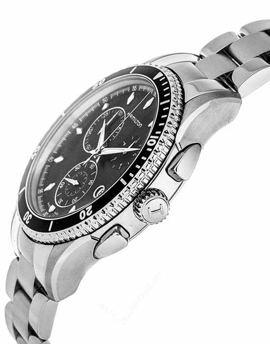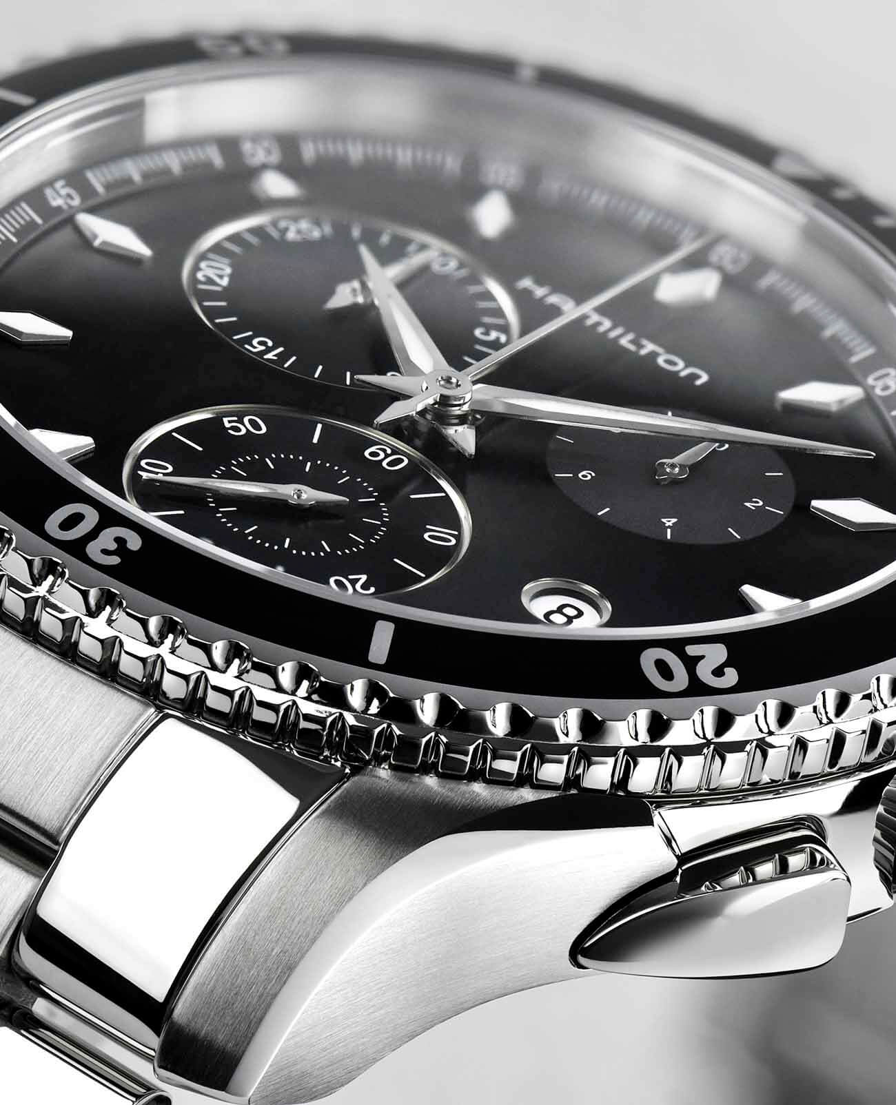 Мужские швейцарские часы Hamilton Jazzmaster Seaview Chrono Quartz H37512131, кварцевый механизм с высокой точностью. Сапфировое стеклоСапфировое стеклоПрочный и надёжный материал из кристалла сапфира синтетического происхождения, характеризующийся особой твёрдостью и устойчивостью к царапинам и повреждениям. устойчивое к появлению царапин, обладающее высокой прозрачностью. Класс водозащиты: 100 метров, позволит плавать, нырять и заниматься другими водными видами спорта. Корпус часов изготовлен из нержавеющей стали. Стрелки и метки с люминесцентным покрытиемЛюминесцентное покрытиеПозволяет считывать показания времени в темноте. Производители наносят на стрелки, часовые индексы, безель или поверхность циферблата светонакопительный состав, дающий холодное свечение..