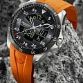 , будильникБудильникБуди́льник — часы, в заданный момент времени подающие звуковой, световой и/или в редких случаях другой сигнал., хронографХронографФункция позволяет измерять отрезки времени с особой точностью: часы, минуты, секунды. Верным признаком хронографа является наличие на циферблате 3 дополнительных окошек-счётчиков., обратный отсчет, регистратор времени полета, индикатор температуры ISA и вечный календарьВечный календарьКлассическое часовое усложнение, представляющее собой календарь, рассчитанный на несколько лет вперёд (стандартно – до 2099 года). Определяет текущую дату, день недели, месяц.. Корпус часов изготовлен из нержавеющей стали с PVD-покрытиемPVDУльтратонкое покрытие наносится в технике вакуумного напыления, сочетает в себе нитрид титана особой прочности со слоем золота или оксида хрома. Несёт в себе декоративную или защитную функцию.. Сапфировое стеклоСапфировое стеклоПрочный и надёжный материал из кристалла сапфира синтетического происхождения, характеризующийся особой твёрдостью и устойчивостью к царапинам и повреждениям. устойчивое к мелким механическим повреждениям. Стрелки и метки с люминесцентным покрытиемЛюминесцентное покрытиеПозволяет считывать показания времени в темноте. Производители наносят на стрелки, часовые индексы, безель или поверхность циферблата светонакопительный состав, дающий холодное свечение.. Кожаный ремешок на застёжке-бабочке с кнопкамиЗастёжка "бабочка"Такой вид застёжки дополняется предохранителями, помогающими избежать случайного раскрытия браслета. Обладают изящным исполнением. .