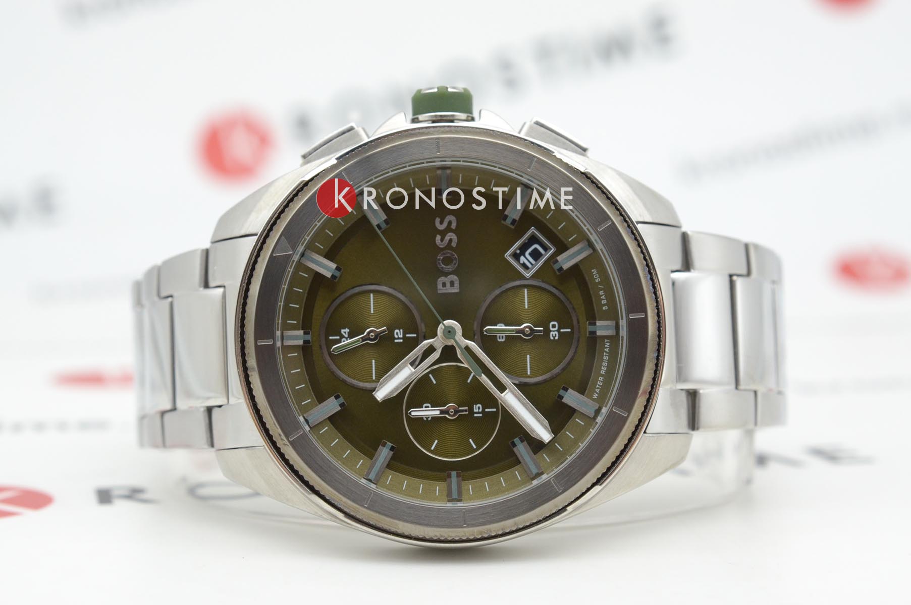 Мужские часы Hugo Boss Volane HB 1513951 представлены в круглом 44-мм корпусе из нержавеющей стали. Оснащены кварцевым механизмом с функциями хронографаХронографФункция позволяет измерять отрезки времени с особой точностью: часы, минуты, секунды. Верным признаком хронографа является наличие на циферблате 3 дополнительных окошек-счётчиков. и секундомеромСекундомерСекундоме́р — прибор, способный измерять интервалы времени с точностью до долей секунды.. Зеленый циферблат защищен устойчивым к царапинам минеральным стекломМинеральное стеклоМинеральное стекло представляет собой искусственно выращенный минерал кварца. Такое стекло отличается особой устойчивостью к повреждениям и царапинам. Уступает по некоторым качествам сапфировому стеклу.. Стальной браслет серебристого цвета дополнен раскладной застёжкойРаскладная застёжкаТакой тип застёжки используется только на браслетах из металла. Она никогда не раскрывается полностью, происходит разделение на 2 и более частей. Раскладывающая застёжка снизит вероятность потери часов к минимуму., а стрелки покрыты люминесцентным составомЛюминесцентное покрытиеПозволяет считывать показания времени в темноте. Производители наносят на стрелки, часовые индексы, безель или поверхность циферблата светонакопительный состав, дающий холодное свечение. для видимости в темноте. Водонепроницаемость 100 метров (10 ATM) позволяет использовать часы для плавания.