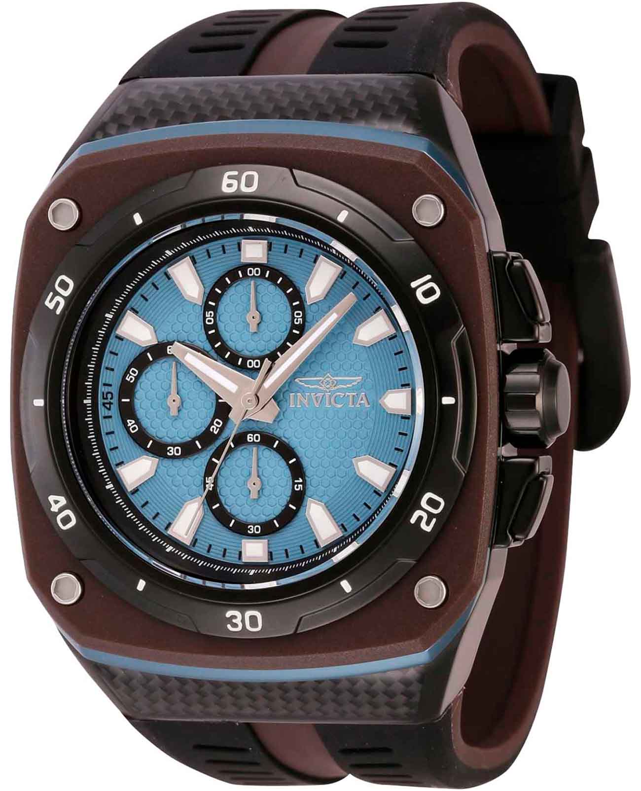 Мужские наручные часы-хронографХронографФункция позволяет измерять отрезки времени с особой точностью: часы, минуты, секунды. Верным признаком хронографа является наличие на циферблате 3 дополнительных окошек-счётчиков. Invicta IN46106 из коллекции Speedway сочетают в себе спортивный дизайн и надежность современных технологий. Модель обладает круглым корпусом диаметром 46 мм, изготовленным из стали с IP-покрытиемIP-покрытиеМетод ионного напыления. Демонстрирует повышенную устойчивость к истиранию, окислению и химическим веществам. Под воздействием высокого давления и температуры около 1500°C молекулы металла надёжно соединяются с частицами корпуса часов., что обеспечивает привлекательный внешний вид и устойчивость к коррозии . Ремешок выполнен из силикона черного цвета шириной 3 см, гарантируя комфортное ношение . Черный циферблат с метками в виде штрихов оснащен люминесцентным покрытиемЛюминесцентное покрытиеПозволяет считывать показания времени в темноте. Производители наносят на стрелки, часовые индексы, безель или поверхность циферблата светонакопительный состав, дающий холодное свечение., что обеспечивает хорошую видимость в темноте . Для защиты используется минеральное стеклоМинеральное стеклоМинеральное стекло представляет собой искусственно выращенный минерал кварца. Такое стекло отличается особой устойчивостью к повреждениям и царапинам. Уступает по некоторым качествам сапфировому стеклу., обеспечивающее прочную защиту от царапин . Часы работают на кварцевом механизме, что гарантирует точное время без необходимости подзаводки. Модель также является хронографомХронографФункция позволяет измерять отрезки времени с особой точностью: часы, минуты, секунды. Верным признаком хронографа является наличие на циферблате 3 дополнительных окошек-счётчиков., оснащенным функцией секундомераСекундомерСекундоме́р — прибор, способный измерять интервалы времени с точностью до долей секунды., делая ее идеальной для активного образа жизни . Водонепроницаемость часов достигает 50 метров (5 атмосфер), что позволяет использовать их во время мытья рук или дождя, однако не рекомендуется для плавания или дайвинга .
