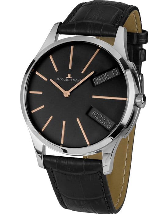 Наручные часы Jacques Lemans призваны ставить на первое место индивидуальный стиль владельца, классическая элегантность придётся по вкусу каждому. Брендовые часы привлекают минималистичным дизайном, отсутствие вычурности и обилия декорирующих элементов делают модель лучшим решением для ежедневного применения. Аксессуар можно носить с деловыми костюмами и повседневной одеждой, он органично сочетается как с классическими брюками, так и с рваными джинсами. Это настоящее часовое искусство высокого качества, часы считаются актуальным вариантом на все времена и с идеальной точностью показывают время благодаря надёжному японскому механизму.
