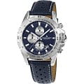 Мужские наручные часы с хронографом; Корпус - Нержавеющая сталь, Стекло - Минеральное, Водозащита -100 м. (WR 100), Материал ремешка - Кожаный