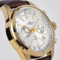 Мужские австрийские часы-хронографХронографФункция позволяет измерять отрезки времени с особой точностью: часы, минуты, секунды. Верным признаком хронографа является наличие на циферблате 3 дополнительных окошек-счётчиков. Jacques Lemans Sport 1-2117F, кварцевый механизм с высокой точностью. Класс водозащиты: 200 метров, позволит плавать, нырять и заниматься другими водными видами спорта. Корпус часов изготовлен из стали с PVD-покрытиемPVDУльтратонкое покрытие наносится в технике вакуумного напыления, сочетает в себе нитрид титана особой прочности со слоем золота или оксида хрома. Несёт в себе декоративную или защитную функцию. из желтого золота. Кнопки хронографаХронографФункция позволяет измерять отрезки времени с особой точностью: часы, минуты, секунды. Верным признаком хронографа является наличие на циферблате 3 дополнительных окошек-счётчиков. продуманного размера удобно использовать, а для рельефной заводной головки предусмотрена дополнительная защита. На белом циферблате с полировкой в виде солнечных лучей расположены крупные часовая и минутная стрелки и риски с люминесцентным покрытиемЛюминесцентное покрытиеПозволяет считывать показания времени в темноте. Производители наносят на стрелки, часовые индексы, безель или поверхность циферблата светонакопительный состав, дающий холодное свечение., которое помогает определить время даже в темноте. Хорошо читаются дополнительные индикаторы 24-х часов, счетчики минут и секунд, окошко даты. Предусмотрен тахиметрТахиметрРазмеченная шкала, располагается на ободке или безеле часов. Тахиметр позволяет рассчитать скорость на определённом участке пути, расстояние измеряется в километрах или милях.: его используют, например, для определения скорости. В часах установлено ударопрочное минеральное стеклоМинеральное стеклоМинеральное стекло представляет собой искусственно выращенный минерал кварца. Такое стекло отличается особой устойчивостью к повреждениям и царапинам. Уступает по некоторым качествам сапфировому стеклу. Crystex. Удобный ремешок темно-коричневого цвета из натуральной кожи (верхняя часть) и силикона (внутренняя часть) дополнен прошивкой, что позволяет продлить срок его службы.
