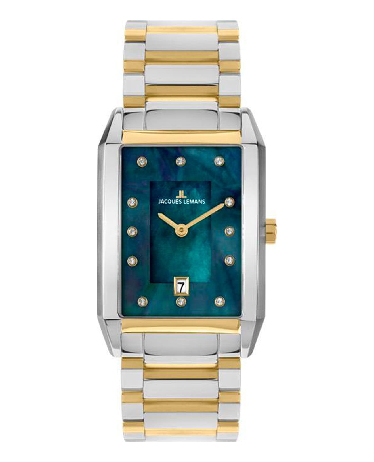 Женские часы Jacques Lemans Classic 1-2158P с минеральным стекломМинеральное стеклоМинеральное стекло представляет собой искусственно выращенный минерал кварца. Такое стекло отличается особой устойчивостью к повреждениям и царапинам. Уступает по некоторым качествам сапфировому стеклу., кварцевый механизм с высокой точностью. Корпус из нержвающей стали. Циферблат украшен кристаллами Swarovski. Окошко даты находится в положении 6 часов. Класс водозащиты: 50 метров, позволит защитить корпус от случайных брызг или капель дождя. Стальной браслет с частичным PVD-покрытиемPVDУльтратонкое покрытие наносится в технике вакуумного напыления, сочетает в себе нитрид титана особой прочности со слоем золота или оксида хрома. Несёт в себе декоративную или защитную функцию. на раскладной застёжкеРаскладная застёжкаТакой тип застёжки используется только на браслетах из металла. Она никогда не раскрывается полностью, происходит разделение на 2 и более частей. Раскладывающая застёжка снизит вероятность потери часов к минимуму..