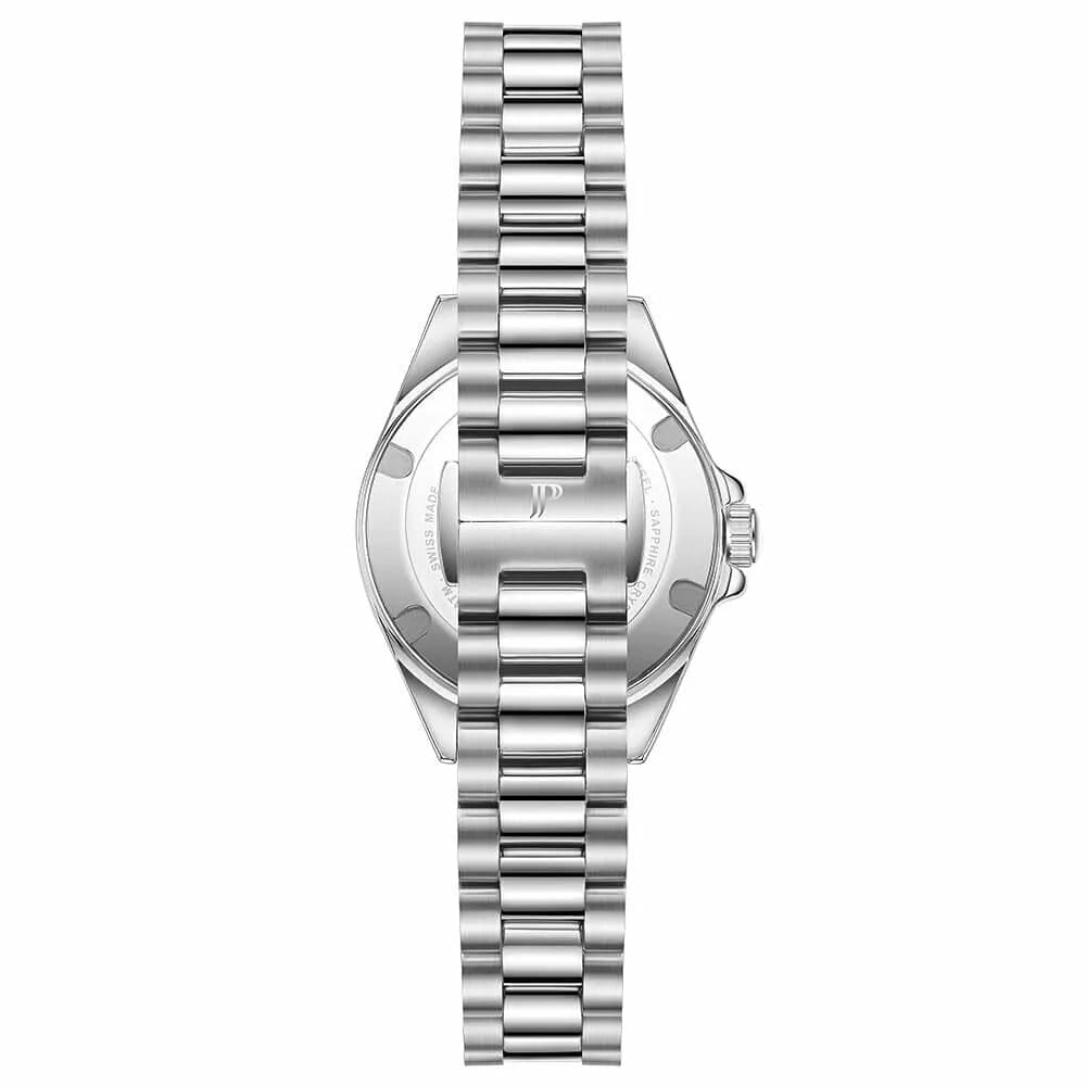 Часы Jacques Philippe JPQLS731386 из коллекции Infinitum — элегантные женские  часы, сочетающие в себе швейцарское качество и современный дизайн. Корпус диаметром 30 мм выполнен из нержавеющей стали, а циферблат защищён сапфировым стекломСапфировое стеклоПрочный и надёжный материал из кристалла сапфира синтетического происхождения, характеризующийся особой твёрдостью и устойчивостью к царапинам и повреждениям.. Циферблат инкрустирован кристаллами. Внутри установлен швейцарский кварцевый механизм, обеспечивающий высокую точность хода. Водозащита 100 метров (10 ATM) позволяет использовать часы для плавания и других водных видов спорта. Браслет из нержавеющей стали с застёжкой бабочкаЗастёжка "бабочка"Такой вид застёжки дополняется предохранителями, помогающими избежать случайного раскрытия браслета. Обладают изящным исполнением. обеспечивает комфортное ношение и надёжную фиксацию на запястье. Эти часы идеально подойдут для тех, кто ценит сочетание классического стиля и современных технологий.