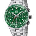 Мужские швейцарские часы-хронографХронографФункция позволяет измерять отрезки времени с особой точностью: часы, минуты, секунды. Верным признаком хронографа является наличие на циферблате 3 дополнительных окошек-счётчиков. Jaguar Ceramic J1022/3. Кварцевый швейцарский калибр Ronda 5030d. Сапфировое стеклоСапфировое стеклоПрочный и надёжный материал из кристалла сапфира синтетического происхождения, характеризующийся особой твёрдостью и устойчивостью к царапинам и повреждениям. устойчивое к мелким механическим повреждениям. Корпус часов изготовлен из нержавеющей стали. Стрелки и метки с люминесцентным покрытиемЛюминесцентное покрытиеПозволяет считывать показания времени в темноте. Производители наносят на стрелки, часовые индексы, безель или поверхность циферблата светонакопительный состав, дающий холодное свечение.. Окошко даты находится в положении 6 часов. Класс водозащиты: 100 метров, позволит плавать, нырять и заниматься другими водными видами спорта. БезельБезельВнешний ободок, закрепляющий стекло. В спортивных часах так называется поворотное кольцо с делениями на циферблате, выполняет роль таймера – замеряет отрезки времени на шкале. Неподвижный безель – элемент декора. Однонаправленно вращающийся безель на дайверских часах позволяет фиксировать моменты погружения и выныривания на поверхность. из высокотехнологичной керамикиВысокотехнологичная керамикаИнновационный запатентованный Rado материал с гладкой или матовой поверхностью. Керамика за счёт кристаллической структуры обладает повышенной устойчивостью от возникновения царапин. Материал способен принимать температуру тела человека, обеспечивая невероятный комфорт при ношении.. Стальной браслет на раскладной застёжкеРаскладная застёжкаТакой тип застёжки используется только на браслетах из металла. Она никогда не раскрывается полностью, происходит разделение на 2 и более частей. Раскладывающая застёжка снизит вероятность потери часов к минимуму..
