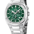 Мужские швейцарские часы-хронографХронографФункция позволяет измерять отрезки времени с особой точностью: часы, минуты, секунды. Верным признаком хронографа является наличие на циферблате 3 дополнительных окошек-счётчиков. Jaguar Executive Chrono J805/C. Кварцевый швейцарский калибр Ronda 5030d. Сапфировое стеклоСапфировое стеклоПрочный и надёжный материал из кристалла сапфира синтетического происхождения, характеризующийся особой твёрдостью и устойчивостью к царапинам и повреждениям. устойчивое к мелким механическим повреждениям. Корпус и браслет часов изготовлены из нержавеющей стали. Стрелки и метки с люминесцентным покрытиемЛюминесцентное покрытиеПозволяет считывать показания времени в темноте. Производители наносят на стрелки, часовые индексы, безель или поверхность циферблата светонакопительный состав, дающий холодное свечение.. Окошко даты находится в положении между «4» и «5 часами». Класс водозащиты: 50 метров, позволит защитить корпус от случайных брызг или капель дождя. Стальной браслет на раскладной застёжкеРаскладная застёжкаТакой тип застёжки используется только на браслетах из металла. Она никогда не раскрывается полностью, происходит разделение на 2 и более частей. Раскладывающая застёжка снизит вероятность потери часов к минимуму..