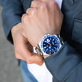 Мужские швейцарские часы Jaguar Executive Diver J860/C. Кварцевый швейцарский калибр Ronda 6003D. Сапфировое стеклоСапфировое стеклоПрочный и надёжный материал из кристалла сапфира синтетического происхождения, характеризующийся особой твёрдостью и устойчивостью к царапинам и повреждениям. устойчивое к мелким механическим повреждениям. Корпус и браслет часов изготовлены из нержавеющей стали. Стрелки и метки с люминесцентным покрытиемЛюминесцентное покрытиеПозволяет считывать показания времени в темноте. Производители наносят на стрелки, часовые индексы, безель или поверхность циферблата светонакопительный состав, дающий холодное свечение.. Окошко даты находится в положении 3 часа. Класс водозащиты: 200 метров, позволит плавать, нырять и заниматься другими водными видами спорта. Стальной браслет на раскладной застёжкеРаскладная застёжкаТакой тип застёжки используется только на браслетах из металла. Она никогда не раскрывается полностью, происходит разделение на 2 и более частей. Раскладывающая застёжка снизит вероятность потери часов к минимуму.. БезельБезельВнешний ободок, закрепляющий стекло. В спортивных часах так называется поворотное кольцо с делениями на циферблате, выполняет роль таймера – замеряет отрезки времени на шкале. Неподвижный безель – элемент декора. Однонаправленно вращающийся безель на дайверских часах позволяет фиксировать моменты погружения и выныривания на поверхность. с PVD-покрытиемPVDУльтратонкое покрытие наносится в технике вакуумного напыления, сочетает в себе нитрид титана особой прочности со слоем золота или оксида хрома. Несёт в себе декоративную или защитную функцию..