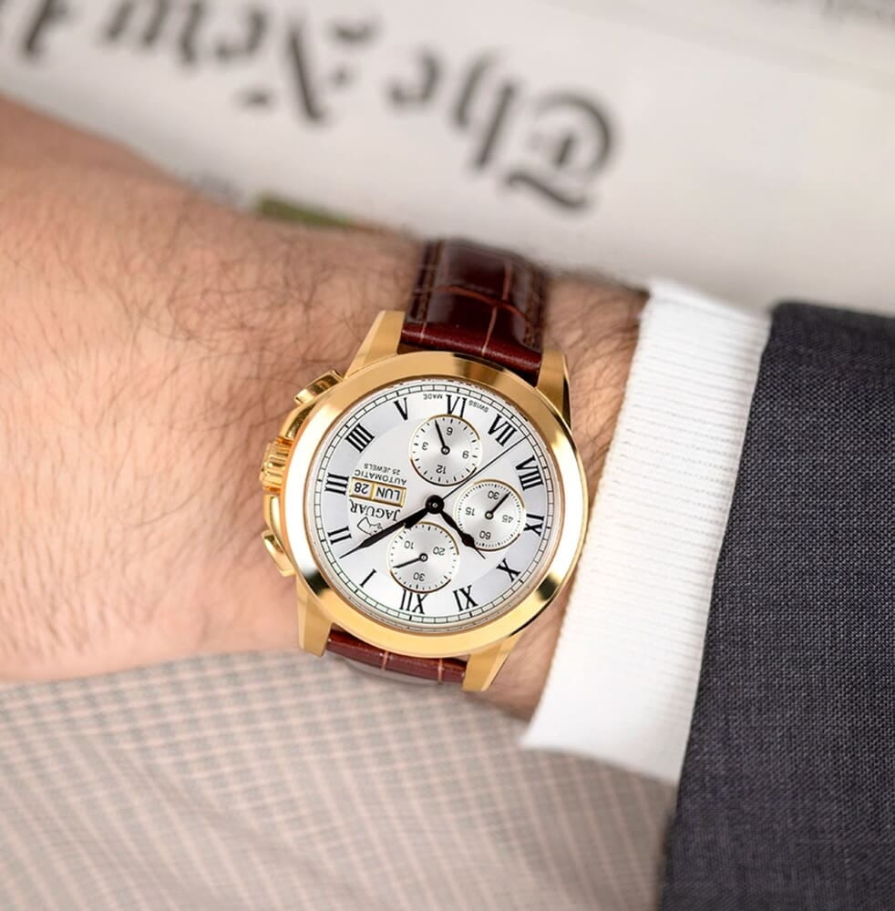 Jaguar Le Chronographe J976/1 — это мужские часы, сочетающие классический дизайн с современными функциями. Корпус диаметром 45 мм выполнен из нержавеющей стали с PVD-покрытиемPVDУльтратонкое покрытие наносится в технике вакуумного напыления, сочетает в себе нитрид титана особой прочности со слоем золота или оксида хрома. Несёт в себе декоративную или защитную функцию., что обеспечивает прочность и элегантный внешний вид. Сапфировое стеклоСапфировое стеклоПрочный и надёжный материал из кристалла сапфира синтетического происхождения, характеризующийся особой твёрдостью и устойчивостью к царапинам и повреждениям. защищает циферблат от царапин и повреждений. Изысканный циферблат со стильными индексами и стрелками подчёркивает утончённый стиль. Часы с хронографом. Часы оснащены стильным кожаным ремешком и классической застежкой, идеальной системой крепления для кожаного ремешка, которая гарантирует, что часы будут надежно оставаться на месте в любое время. Водозащита до 10 ATM (100 метров) делает часы подходящими для плавания и занятий водными видами спорта. Jaguar J976/1 — идеальный выбор для мужчин, которые ценят швейцарское качество и современные технологии.