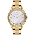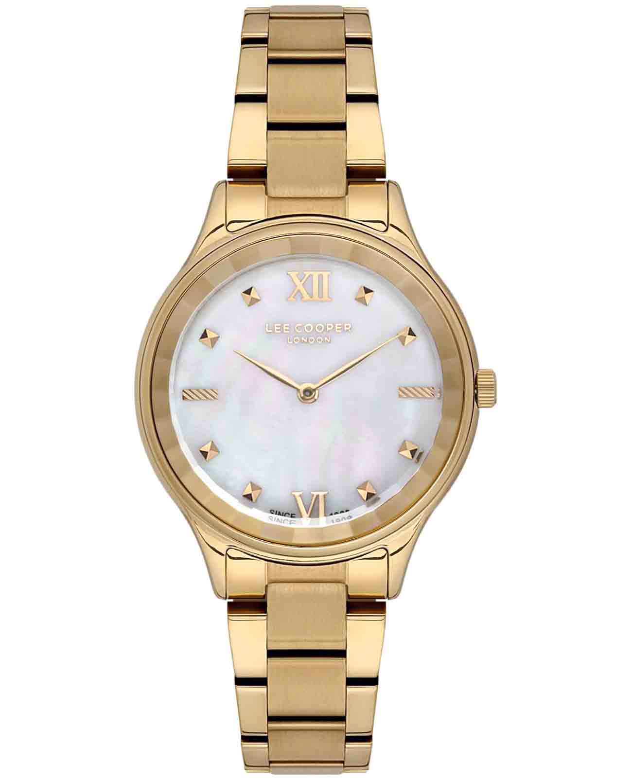 Женские наручные часы Lee Cooper LC07113.120 — это элегантная модель с утончённым дизайном. Корпус диаметром 35 мм выполнен из суперметалла с IP-покрытиемIP-покрытиеМетод ионного напыления. Демонстрирует повышенную устойчивость к истиранию, окислению и химическим веществам. Под воздействием высокого давления и температуры около 1500°C молекулы металла надёжно соединяются с частицами корпуса часов., что придаёт часам изысканный вид. Перламутровый циферблат украшен изящными метками и стрелками, обеспечивая удобное считывание времени. Циферблат защищён минеральным стекломМинеральное стеклоМинеральное стекло представляет собой искусственно выращенный минерал кварца. Такое стекло отличается особой устойчивостью к повреждениям и царапинам. Уступает по некоторым качествам сапфировому стеклу., устойчивым к царапинам. Часы работают на кварцевом механизме, обеспечивая точность хода. Браслет из нержавеющей стали с раскладной застёжкойРаскладная застёжкаТакой тип застёжки используется только на браслетах из металла. Она никогда не раскрывается полностью, происходит разделение на 2 и более частей. Раскладывающая застёжка снизит вероятность потери часов к минимуму. гарантирует комфортное ношение и надёжную фиксацию на запястье. Водозащита 30 метров защищает часы от случайных брызг и дождя, делая их подходящими для повседневного использования.