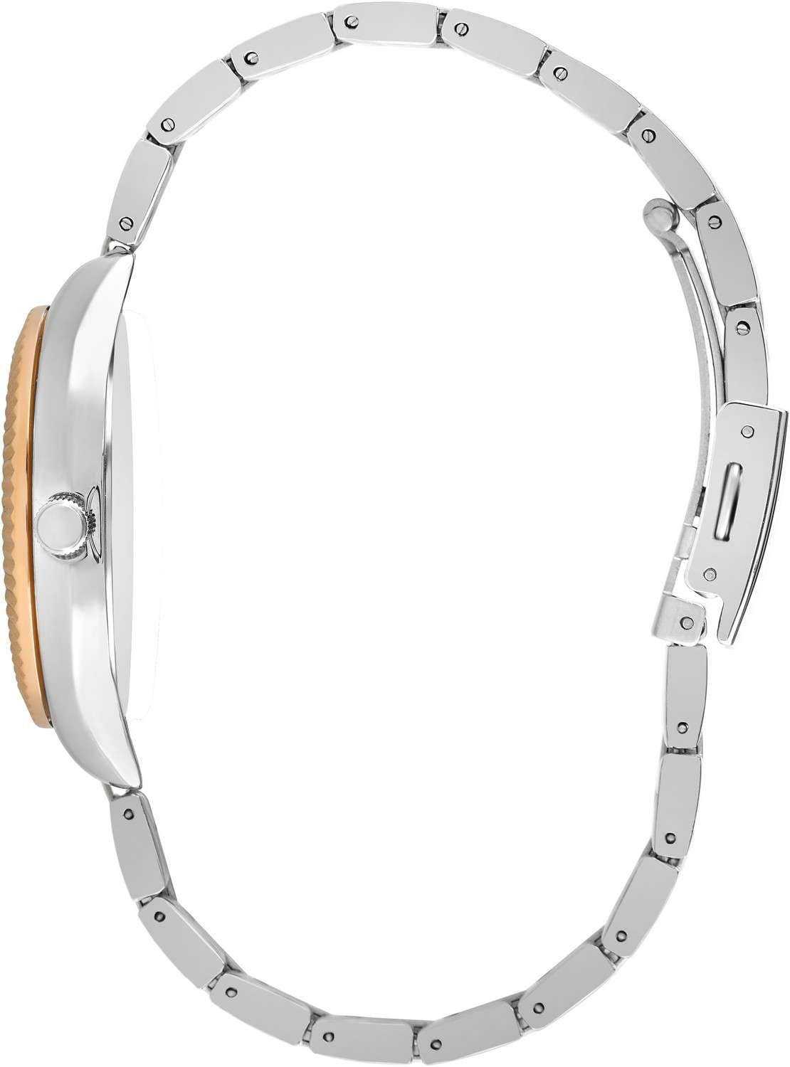 Женские наручные часы Lee Cooper LC07459.520 — это элегантная модель с утончённым дизайном. Корпус диаметром 32 мм выполнен из нсуперметалла, что придаёт часам изысканный вид. Серебристый циферблат украшен изящными римскими цифрами и стрелками обеспечивая удобное считывание времени. Циферблат защищён минеральным стекломМинеральное стеклоМинеральное стекло представляет собой искусственно выращенный минерал кварца. Такое стекло отличается особой устойчивостью к повреждениям и царапинам. Уступает по некоторым качествам сапфировому стеклу., устойчивым к царапинам. Часы работают на кварцевом механизме, обеспечивая точность хода. Браслет из нержавеющей стали с раскладной застёжкойРаскладная застёжкаТакой тип застёжки используется только на браслетах из металла. Она никогда не раскрывается полностью, происходит разделение на 2 и более частей. Раскладывающая застёжка снизит вероятность потери часов к минимуму. гарантирует комфортное ношение и надёжную фиксацию на запястье. Водозащита 30 метров защищает часы от случайных брызг и дождя, делая их подходящими для повседневного использования. Метки покрыты люминесцентным покрытиемЛюминесцентное покрытиеПозволяет считывать показания времени в темноте. Производители наносят на стрелки, часовые индексы, безель или поверхность циферблата светонакопительный состав, дающий холодное свечение., обеспечивая удобное считывание показаний в условиях недостаточного освещения. БезельБезельВнешний ободок, закрепляющий стекло. В спортивных часах так называется поворотное кольцо с делениями на циферблате, выполняет роль таймера – замеряет отрезки времени на шкале. Неподвижный безель – элемент декора. Однонаправленно вращающийся безель на дайверских часах позволяет фиксировать моменты погружения и выныривания на поверхность. с IP-покрытиемIP-покрытиеМетод ионного напыления. Демонстрирует повышенную устойчивость к истиранию, окислению и химическим веществам. Под воздействием высокого давления и температуры около 1500°C молекулы металла надёжно соединяются с частицами корпуса часов..