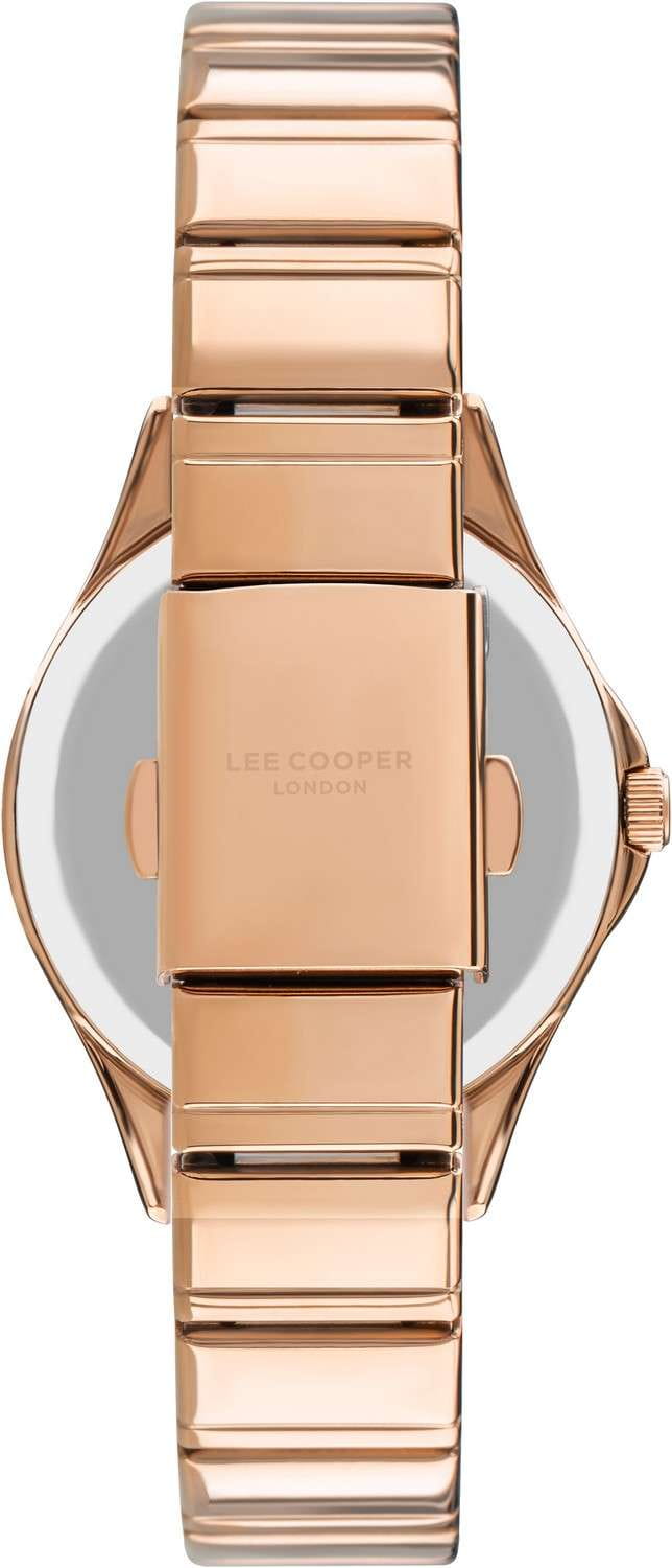 Женские наручные часы Lee Cooper LC07482.410 — это элегантная модель с утончённым дизайном. Корпус диаметром 36 мм выполнен из суперметалла с IP-покрытиемIP-покрытиеМетод ионного напыления. Демонстрирует повышенную устойчивость к истиранию, окислению и химическим веществам. Под воздействием высокого давления и температуры около 1500°C молекулы металла надёжно соединяются с частицами корпуса часов., что придаёт часам изысканный вид. Золотистый циферблат украшен изящными метками с кристаллами и стрелками, обеспечивая удобное считывание времени. Циферблат защищён минеральным стекломМинеральное стеклоМинеральное стекло представляет собой искусственно выращенный минерал кварца. Такое стекло отличается особой устойчивостью к повреждениям и царапинам. Уступает по некоторым качествам сапфировому стеклу., устойчивым к царапинам. Часы работают на кварцевом механизме, обеспечивая точность хода. Браслет из нержавеющей стали с раскладной застёжкойРаскладная застёжкаТакой тип застёжки используется только на браслетах из металла. Она никогда не раскрывается полностью, происходит разделение на 2 и более частей. Раскладывающая застёжка снизит вероятность потери часов к минимуму. гарантирует комфортное ношение и надёжную фиксацию на запястье. Водозащита 30 метров защищает часы от случайных брызг и дождя, делая их подходящими для повседневного использования. Имеют встроенный календарь с отображением даты, дня недели и 24-часового формата, что делает их идеальными для организации вашего дня.