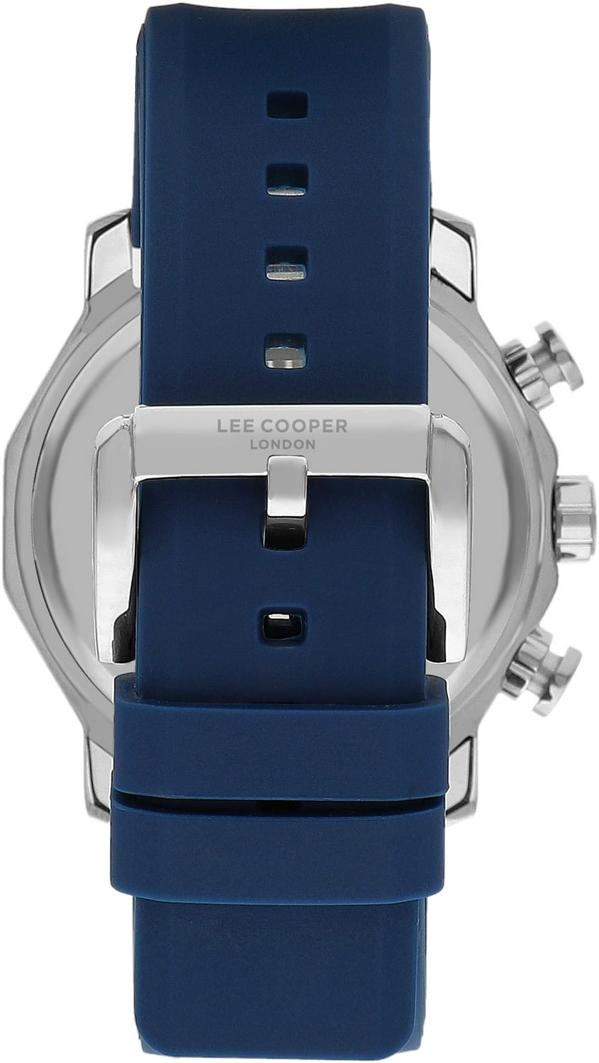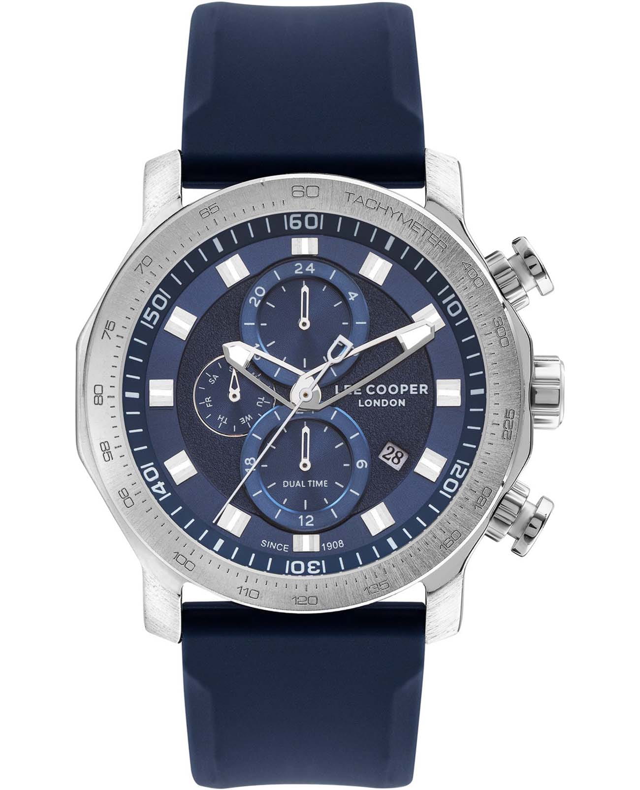Lee Cooper LC07631.399 — элегантная модель с функциональными возможностями для повседневного использования. Корпус из суперметалла диаметром 49 мм придаёт часам классический и современный вид. Циферблат защищён минеральным стекломМинеральное стеклоМинеральное стекло представляет собой искусственно выращенный минерал кварца. Такое стекло отличается особой устойчивостью к повреждениям и царапинам. Уступает по некоторым качествам сапфировому стеклу., устойчивым к царапинам, хорошо может выдержать небольшие удары и падения. Стильный циферблат оформлен изысканными индексами и дополнен окошками даты, дня недели и 24-часового индикатора, а также аккуратными метками и стрелками с люминесцентным покрытиемЛюминесцентное покрытиеПозволяет считывать показания времени в темноте. Производители наносят на стрелки, часовые индексы, безель или поверхность циферблата светонакопительный состав, дающий холодное свечение., что гарантирует читаемость даже в условиях недостаточного освещения. Функция второго часового поясаВторой часовой поясФункция, позволяющая отображать время двух часовых поясов одновременно. делает часы удобными для путешественников. Часы работают на кварцевом механизме, обеспечивающем точность хода. Каучуковый ремешок на стандартной застёжке гарантирует удобную посадку и надёжную фиксацию на запястье. Водозащита 50 метров защищает часы от брызг и дождя, делая их подходящими для повседневного использования.