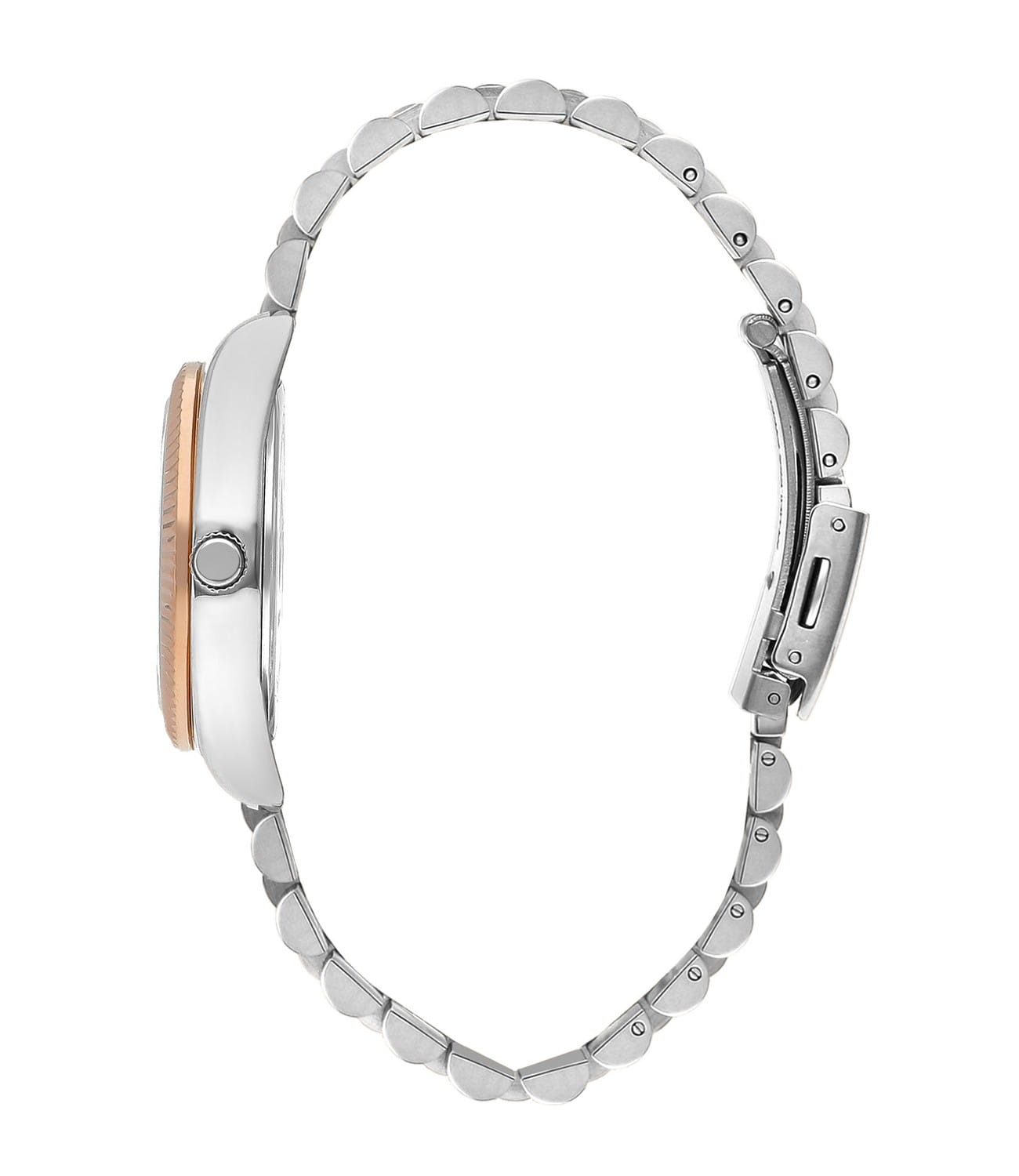 Женские часы Lee Cooper LC07824.520 выполнены в классическом стиле и сочетают строгий дизайн с надёжным механизмом. Модель оснащена кварцевым механизмом, обеспечивающим точность хода и минимальное обслуживание. Корпус c диаметром 36 мм, изготовлен из суперметалла с изысканным неподвижным безелемБезельВнешний ободок, закрепляющий стекло. В спортивных часах так называется поворотное кольцо с делениями на циферблате, выполняет роль таймера – замеряет отрезки времени на шкале. Неподвижный безель – элемент декора. Однонаправленно вращающийся безель на дайверских часах позволяет фиксировать моменты погружения и выныривания на поверхность. с IP-покрытиемIP-покрытиеМетод ионного напыления. Демонстрирует повышенную устойчивость к истиранию, окислению и химическим веществам. Под воздействием высокого давления и температуры около 1500°C молекулы металла надёжно соединяются с частицами корпуса часов., гарантирует комфорт при ношении. Перламутровый циферблат дополнен штрихами и римскими цифрами для чёткого отсчёта времени. Защиту циферблата обеспечивает минеральное стеклоМинеральное стеклоМинеральное стекло представляет собой искусственно выращенный минерал кварца. Такое стекло отличается особой устойчивостью к повреждениям и царапинам. Уступает по некоторым качествам сапфировому стеклу., устойчивое к мелким механическим повреждениям. Стальной браслет с частичным IP-покрытиемIP-покрытиеМетод ионного напыления. Демонстрирует повышенную устойчивость к истиранию, окислению и химическим веществам. Под воздействием высокого давления и температуры около 1500°C молекулы металла надёжно соединяются с частицами корпуса часов. на раскладной застёжкеРаскладная застёжкаТакой тип застёжки используется только на браслетах из металла. Она никогда не раскрывается полностью, происходит разделение на 2 и более частей. Раскладывающая застёжка снизит вероятность потери часов к минимуму. гарантирует удобную посадку и надёжную фиксацию на запястье. Стрелки и метки с люминесцентным покрытиемЛюминесцентное покрытиеПозволяет считывать показания времени в темноте. Производители наносят на стрелки, часовые индексы, безель или поверхность циферблата светонакопительный состав, дающий холодное свечение., обеспечивающим хорошую читаемость в темноте. Водозащита 30WR позволяет использовать часы в повседневных условиях без риска повреждения от случайных брызг воды. Это сочетание классического дизайна, прочности материалов и качества исполнения для уверенных в себе женщин.