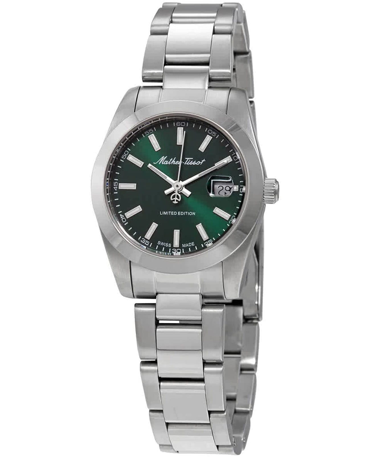 Женские кварцевые часы Mathey-Tissot Mathy D451VE — это стильное сочетание элегантности и современного дизайна. Лимитированная серия. Изящный корпус выполнен из нержавеющей стали, диаметром 32 мм, что придаст образу женственности и романтизма. Изысканный циферблат с метками в виде штрихов придает модели особый блеск. Циферблат защищен минеральным стекломМинеральное стеклоМинеральное стекло представляет собой искусственно выращенный минерал кварца. Такое стекло отличается особой устойчивостью к повреждениям и царапинам. Уступает по некоторым качествам сапфировому стеклу., обеспечивающий устойчивость к царапинам. Стрелки и метки с люминесцентным покрытиемЛюминесцентное покрытиеПозволяет считывать показания времени в темноте. Производители наносят на стрелки, часовые индексы, безель или поверхность циферблата светонакопительный состав, дающий холодное свечение.. Окошко даты находится в положении 3 часа. Часы оснащены надежным кварцевым механизмом. Стальной браслет на раскладной застёжке с фиксаторомРаскладная застёжкаТакой тип застёжки используется только на браслетах из металла. Она никогда не раскрывается полностью, происходит разделение на 2 и более частей. Раскладывающая застёжка снизит вероятность потери часов к минимуму., гарантирует комфортное и безопасное ношение. Класс водозащиты: 50 метров позволит защитить корпус от случайных брызг или капель дождя. Mathey-Tissot  — отличный выбор для тех, кто ценит утонченность и качество.