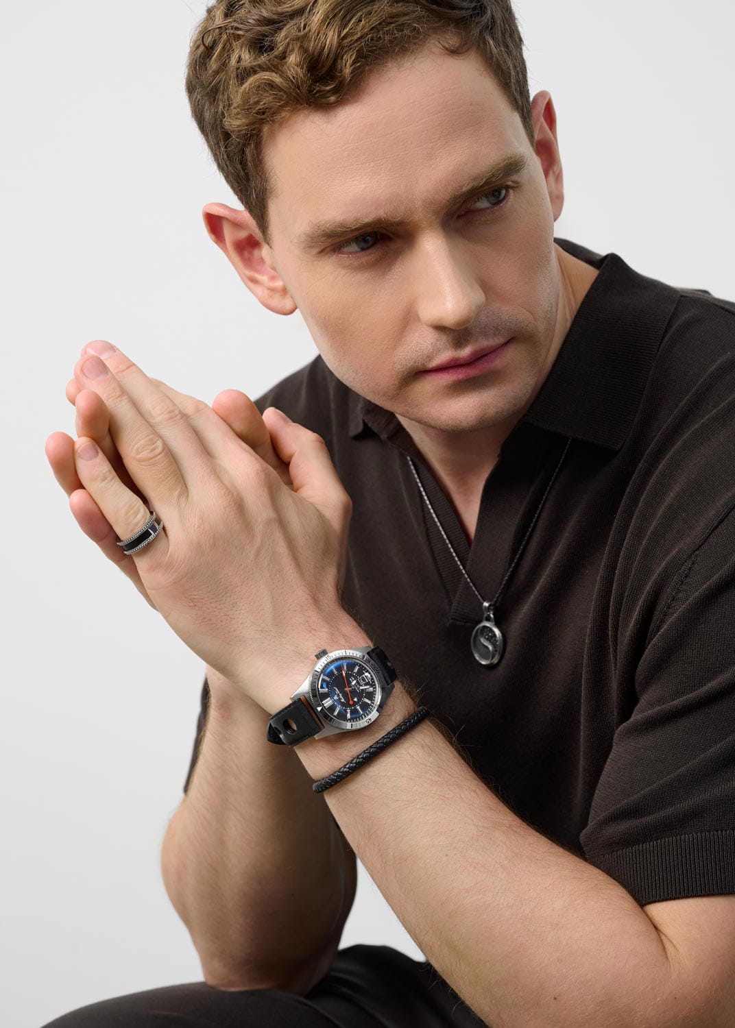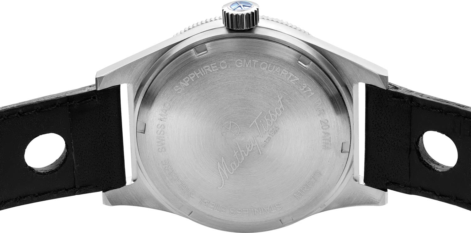 Мужские кварцевые часы Mathey-Tissot Mergulhador GMTGMTОтображение времени второго часового пояса.Такая функция особенно актуальна для путешественников и бизнесменов,которые общаются с людьми из разных стран,теперь вы всегда будете знать,какой час у вашего партнёра или близкого человека. MRGAN — это стильное сочетание элегантности и современного дизайна. Изящный корпус выполнен из нержавеющей стали, диаметром 41 мм, что придаст образу элегантности и надежности. Циферблат с метками в виде штрихов придает модели особый блеск. Циферблат защищен минеральным стекломМинеральное стеклоМинеральное стекло представляет собой искусственно выращенный минерал кварца. Такое стекло отличается особой устойчивостью к повреждениям и царапинам. Уступает по некоторым качествам сапфировому стеклу. с сапфировым покрытием, обеспечивает устойчивость к царапинам. Второй часовой поясВторой часовой поясФункция, позволяющая отображать время двух часовых поясов одновременно. в 24-х часовом формате времени отображается центральной стрелкой. Стрелки и метки с люминесцентным покрытиемЛюминесцентное покрытиеПозволяет считывать показания времени в темноте. Производители наносят на стрелки, часовые индексы, безель или поверхность циферблата светонакопительный состав, дающий холодное свечение. SuperLumiNova, которое светится в темноте после непродолжительной зарядки на свету. Окошко даты находится в положении 6 часов.  Рифленый безельБезельВнешний ободок, закрепляющий стекло. В спортивных часах так называется поворотное кольцо с делениями на циферблате, выполняет роль таймера – замеряет отрезки времени на шкале. Неподвижный безель – элемент декора. Однонаправленно вращающийся безель на дайверских часах позволяет фиксировать моменты погружения и выныривания на поверхность. с минутными отметками вращается в одном направлении. Часы оснащены надежным кварцевым механизмом. Кожаный ремешок на стандартной застёжке гарантирует комфортное и безопасное ношение. Класс водозащиты: 200 метров позволит плавать, нырять и заниматься другими водными видами спорта. Mathey-Tissot  — отличный выбор для тех, кто ценит утонченность и качество.