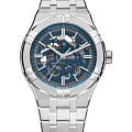 Maurice Lacroix AIKON Automatic 42mm AI6008-SS002-031-1 — выразительная модель в узнаваемом архитектурном стиле AIKON, объединяющая элегантность, функциональность и спортивный дух. Корпус диаметром 42 мм выполнен из нержавеющей стали с чередованием полированной и сатинированной отделки. Безель с шестью накладками подчеркивает фирменный характер линии. Циферблат защищён сапфировым стекломСапфировое стеклоПрочный и надёжный материал из кристалла сапфира синтетического происхождения, характеризующийся особой твёрдостью и устойчивостью к царапинам и повреждениям. с двойным антибликовым покрытиемАнтибликовое покрытиеСлой оксида металла в 0,13-0,3 микрон, благодаря которому стекло часов не бликует и не отражает свет. Антибликовое покрытие уменьшает отражение света в 10 раз, обеспечивая отличную читаемость показателей циферблата.. Синий циферблат с радиальным узором sunray дополнен накладными часовыми индексами и стрелками с люминесцентным покрытиемЛюминесцентное покрытиеПозволяет считывать показания времени в темноте. Производители наносят на стрелки, часовые индексы, безель или поверхность циферблата светонакопительный состав, дающий холодное свечение.. Окно даты расположено на «3 часах». Внутри установлен автоматический механизм ML115 (на базе Sellita SW200), обеспечивающий надёжную работу, 38 часов запаса хода и частоту 28 800 полуколебаний в час. Браслет из нержавеющей стали с системой быстрой замены и застёжкой «бабочка» с кнопкамиЗастёжка "бабочка"Такой вид застёжки дополняется предохранителями, помогающими избежать случайного раскрытия браслета. Обладают изящным исполнением. гарантирует комфортную посадку и надёжность. Водонепроницаемость до 200 метров делает AIKON Automatic универсальным выбором как для делового образа, так и для активного образа жизни. AI6008-SS002-031-1 — современный символ статуса и точности, воплощённый в безупречном швейцарском исполнении.