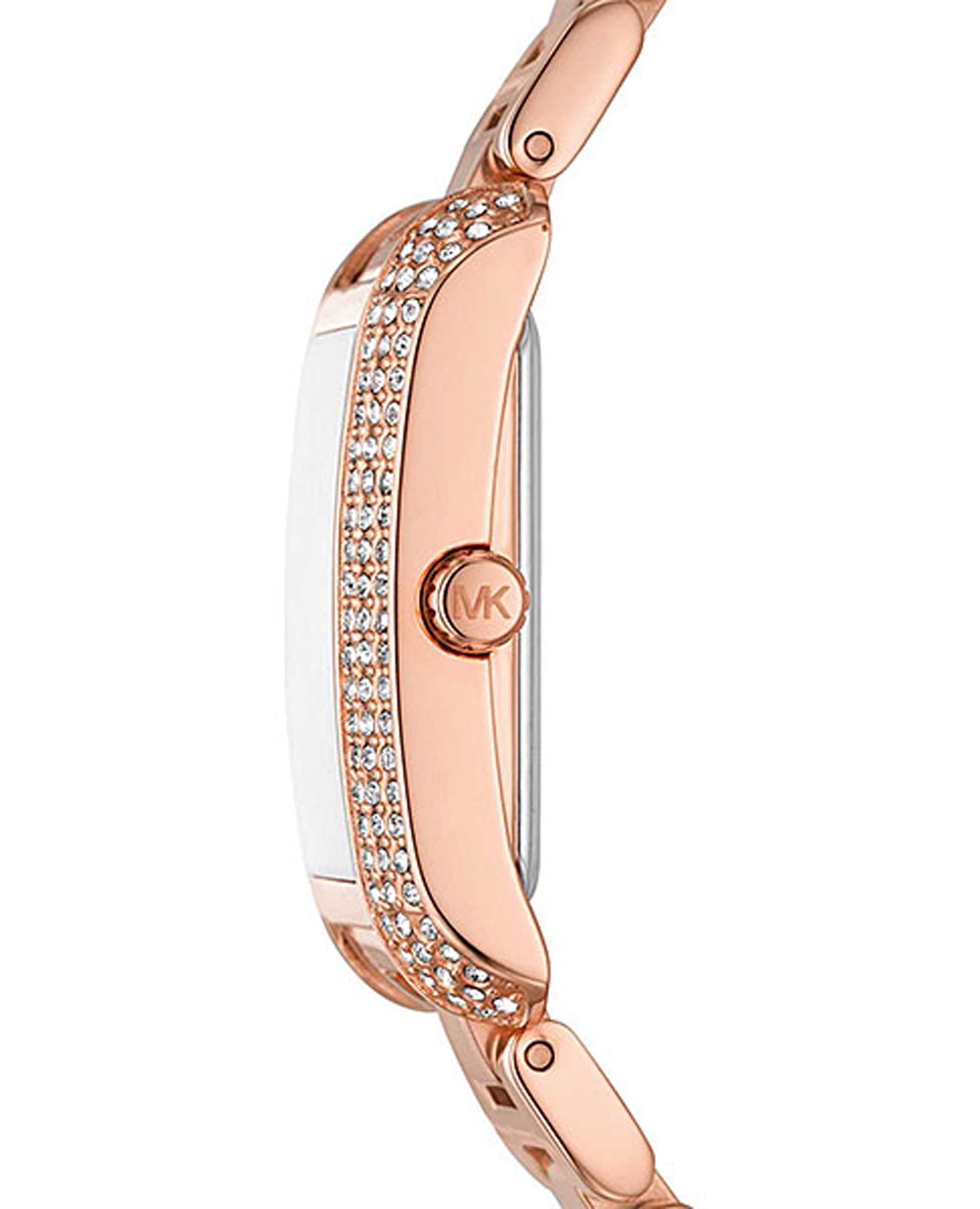Женские американские наручные часы с минеральным стекломМинеральное стеклоМинеральное стекло представляет собой искусственно выращенный минерал кварца. Такое стекло отличается особой устойчивостью к повреждениям и царапинам. Уступает по некоторым качествам сапфировому стеклу. Michael Kors Emery MK4641, кварцевый механизм с высокой точностью. Минеральное стеклоМинеральное стеклоМинеральное стекло представляет собой искусственно выращенный минерал кварца. Такое стекло отличается особой устойчивостью к повреждениям и царапинам. Уступает по некоторым качествам сапфировому стеклу. устойчивое к появлению царапин, обладающее высокой прозрачностью. Корпус и браслет часов изготовлены из нержавеющей стали с PVD-покрытиемPVDУльтратонкое покрытие наносится в технике вакуумного напыления, сочетает в себе нитрид титана особой прочности со слоем золота или оксида хрома. Несёт в себе декоративную или защитную функцию.. БезельБезельВнешний ободок, закрепляющий стекло. В спортивных часах так называется поворотное кольцо с делениями на циферблате, выполняет роль таймера – замеряет отрезки времени на шкале. Неподвижный безель – элемент декора. Однонаправленно вращающийся безель на дайверских часах позволяет фиксировать моменты погружения и выныривания на поверхность. из нержавеющей стали украшен кристаллами. Класс водозащиты: 50 метров, позволит защитить корпус от случайных брызг или капель дождя. Стальной браслет на раскладной застёжкеРаскладная застёжкаТакой тип застёжки используется только на браслетах из металла. Она никогда не раскрывается полностью, происходит разделение на 2 и более частей. Раскладывающая застёжка снизит вероятность потери часов к минимуму..