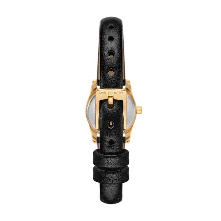Женские американские часы Michael Kors Lexington MK4901 имеют кварцевый механизм с высокой точностью. Корпус часов изготовлен из нержавеющей стали с PVD-покрытиемPVDУльтратонкое покрытие наносится в технике вакуумного напыления, сочетает в себе нитрид титана особой прочности со слоем золота или оксида хрома. Несёт в себе декоративную или защитную функцию. золотистого цвета, диаметром 19 мм. Циферблат с метками в виде римских цифр защищен минеральным стекломМинеральное стеклоМинеральное стекло представляет собой искусственно выращенный минерал кварца. Такое стекло отличается особой устойчивостью к повреждениям и царапинам. Уступает по некоторым качествам сапфировому стеклу., что обеспечивает надежную защиту от царапин и повреждений. Неподвижный рифленый безельБезельВнешний ободок, закрепляющий стекло. В спортивных часах так называется поворотное кольцо с делениями на циферблате, выполняет роль таймера – замеряет отрезки времени на шкале. Неподвижный безель – элемент декора. Однонаправленно вращающийся безель на дайверских часах позволяет фиксировать моменты погружения и выныривания на поверхность.. Класс водозащиты: 50 метров позволит защитить корпус от случайных брызг или капель дождя. Удобный кожаный ремешок с фирменным рисунком и классической застежкой обеспечивает надежную фиксацию на запястье и легкость в надевании и снятии. Эти часы станут отличным дополнением к любому наряду, подчеркивая индивидуальность и стиль их обладательницы. Идеальный аксессуар, который придаст женскому образу завершенность и особый шарм.