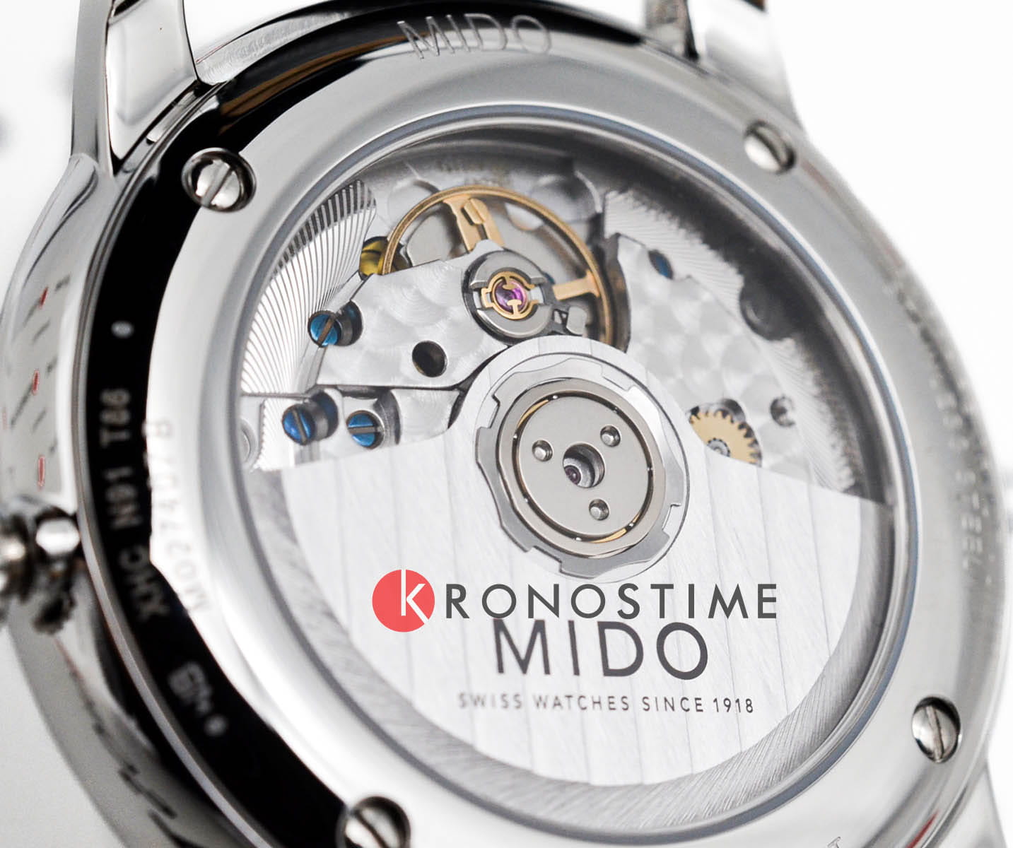 Модель оснащена автоматическим механизмом Mido Caliber 72 с запасом хода до 72 часов, что гарантирует точность и надёжность. Окно даты на отметке 3 часов добавляет удобства в повседневной жизни.