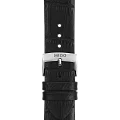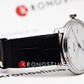 Чёрный кожаный ремешок с классической застёжкой обеспечивает комфортное ношение и надёжную фиксацию. Водозащита до 3 ATM делает часы подходящими для случайных контактов с водой.