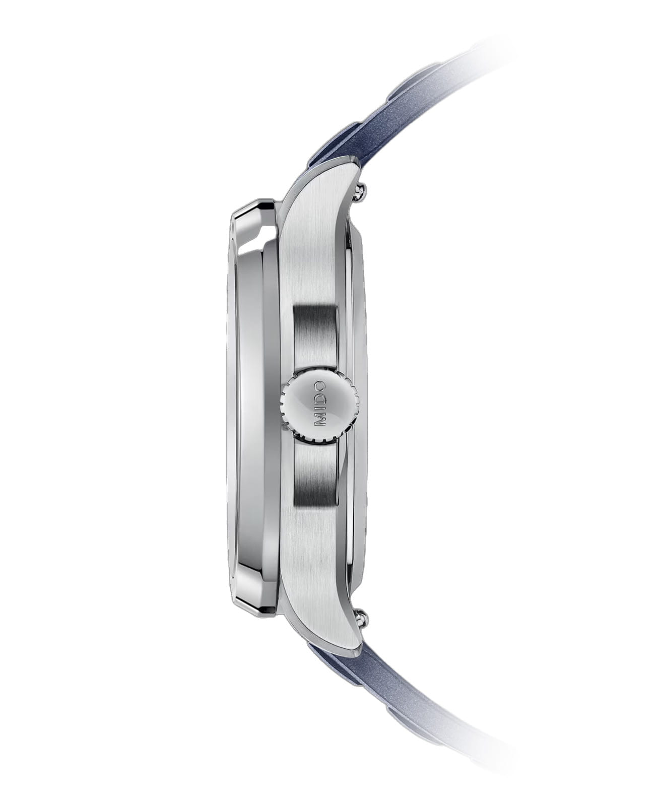 Мужские механические швейцарские часы Mido Multifort TV Big Date M049.526.17.041.00, механический механизм (автоматический калибр) с высокой точностью. Сапфировое стеклоСапфировое стеклоПрочный и надёжный материал из кристалла сапфира синтетического происхождения, характеризующийся особой твёрдостью и устойчивостью к царапинам и повреждениям. устойчивое к появлению царапин, обладающее высокой прозрачностью. Корпус часов изготовлен из нержавеющей стали в форме телевизора, столь же впечатляющий, сколь и точный, благодаря своему мощному механическому механизму. Современный и динамичный дизайн этих швейцарских часов подчеркивается ярким горизонтальным циферблатом с матовой отделкой, а также их отличительной функцией: большой датой в положении 12 часов. Стрелки с люминесцентным покрытиемЛюминесцентное покрытиеПозволяет считывать показания времени в темноте. Производители наносят на стрелки, часовые индексы, безель или поверхность циферблата светонакопительный состав, дающий холодное свечение.. Мощный автоматический механизм последнего поколения Calibre 80 оснащен высокотехнологичной балансировочной пружиной Nivachron ™ , которая обеспечивает исключительную устойчивость к ударам и магнитным полям. Класс водозащиты: 100 метров, позволит плавать, нырять и заниматься другими водными видами спорта. Каучуковый ремешок на стандартной застежке.
