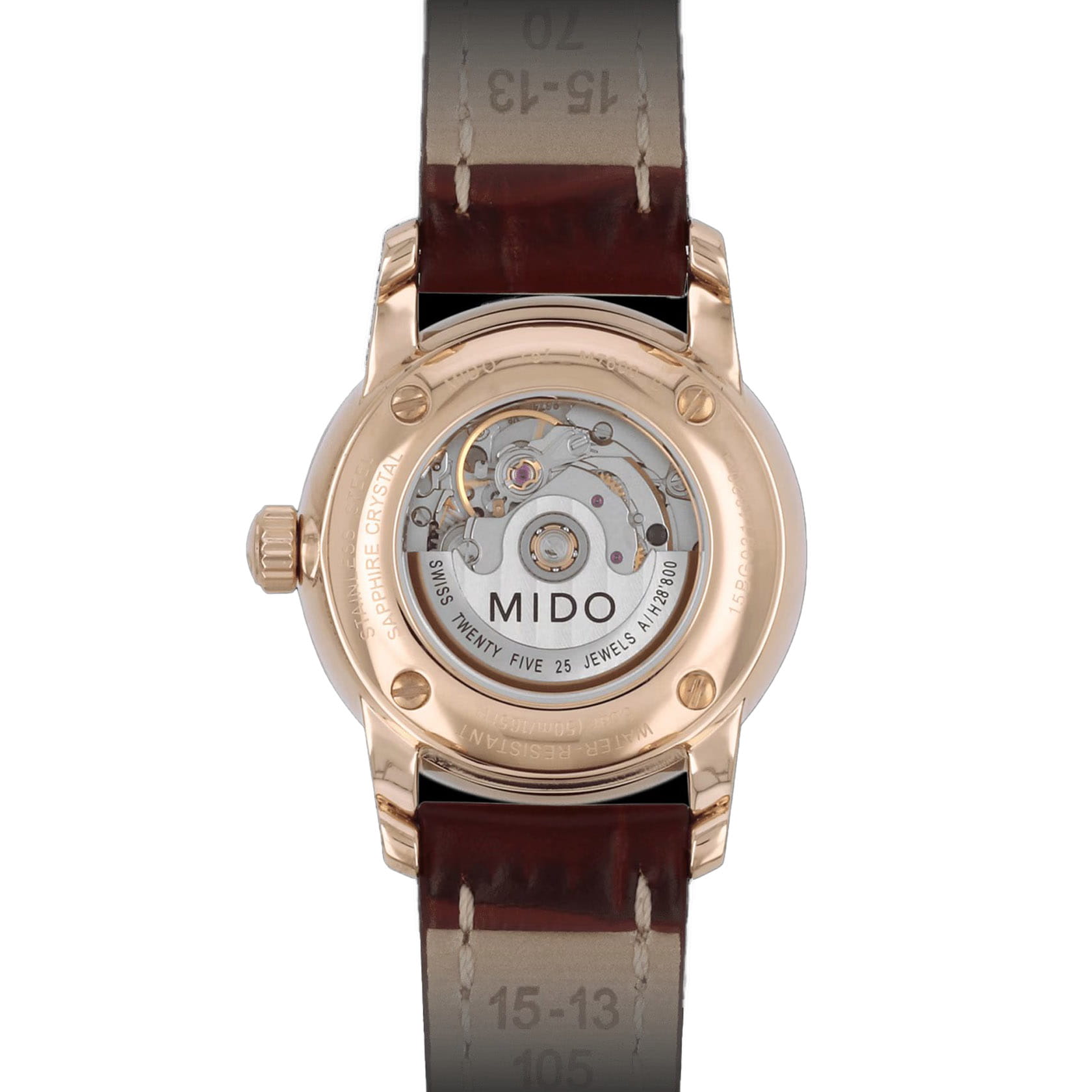 Женские швейцарские механические часы Mido Baroncelli M7600.2.21.8, автоматический механизм с высокой точностью. Сапфировое стеклоСапфировое стеклоПрочный и надёжный материал из кристалла сапфира синтетического происхождения, характеризующийся особой твёрдостью и устойчивостью к царапинам и повреждениям. устойчивое к появлению царапин, обладающее высокой прозрачностью. Класс водозащиты: 50 метров, позволит защитить корпус от случайных брызг или капель дождя. Корпус часов изготовлен из стали с PVD-покрытиемPVDУльтратонкое покрытие наносится в технике вакуумного напыления, сочетает в себе нитрид титана особой прочности со слоем золота или оксида хрома. Несёт в себе декоративную или защитную функцию..