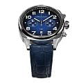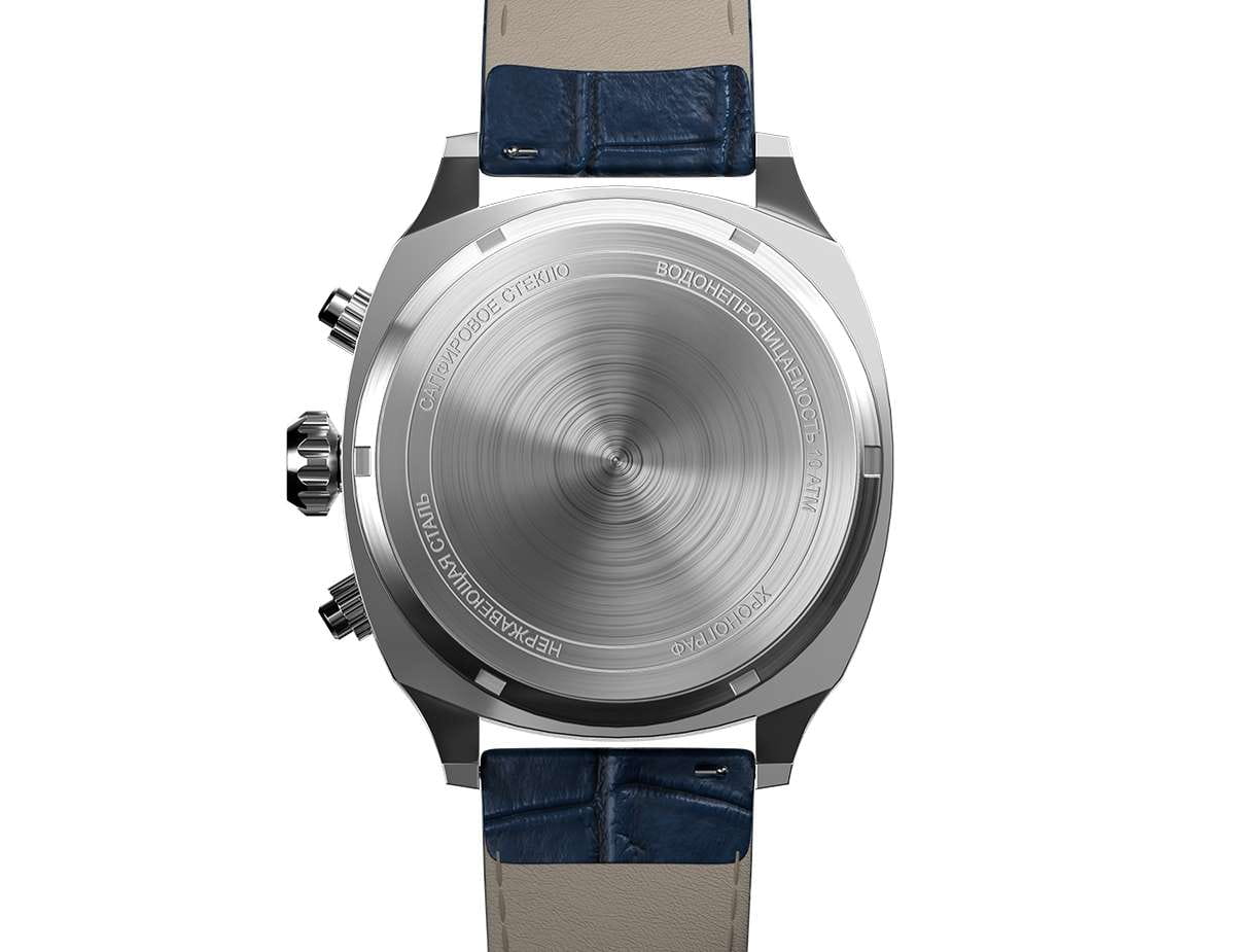 Мужские кварцевые часы — это стильный и функциональный аксессуар. Корпус диаметром 42 мм выполнен из нержавеющей стали 316L с зеркальной полировкой. Циферблат синего цвета оформлен индексами и стрелками с люминесцентным покрытиемЛюминесцентное покрытиеПозволяет считывать показания времени в темноте. Производители наносят на стрелки, часовые индексы, безель или поверхность циферблата светонакопительный состав, дающий холодное свечение.. Окошко даты расположено в положении 6 часов. Циферблат защищён сапфировым стекломСапфировое стеклоПрочный и надёжный материал из кристалла сапфира синтетического происхождения, характеризующийся особой твёрдостью и устойчивостью к царапинам и повреждениям.. Механизм — японский кварцевый калибр Miyota 6S21 с функцией хронографаХронографФункция позволяет измерять отрезки времени с особой точностью: часы, минуты, секунды. Верным признаком хронографа является наличие на циферблате 3 дополнительных окошек-счётчиков.. Часы оснащены кожаным ремешком синего цвета с текстурой под аллигатора и стандартной застёжкой. Водонепроницаемость 100 м позволяет использовать часы для плавания и повседневного ношения. Идеальный выбор для тех, кто ценит точность, качество и выразительный дизайн.