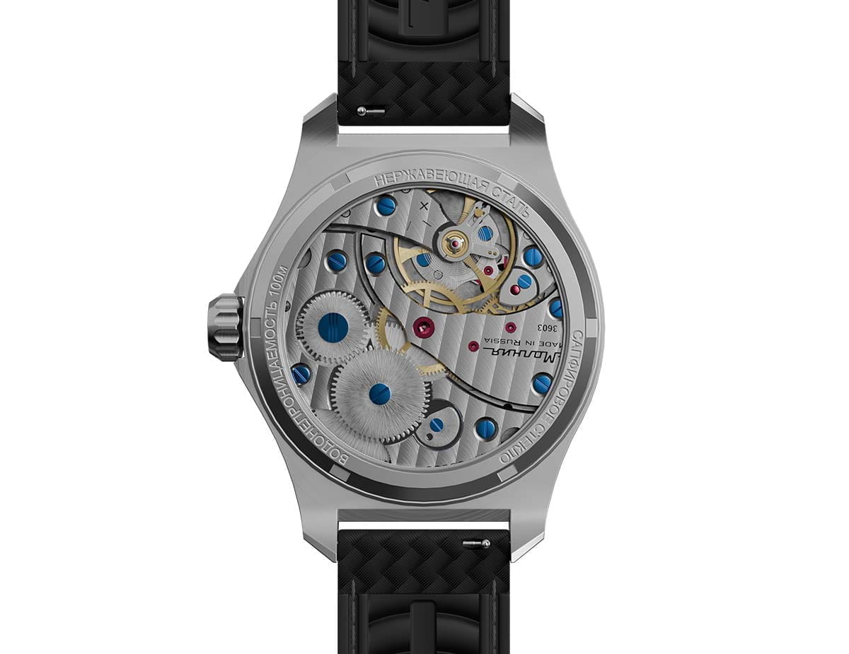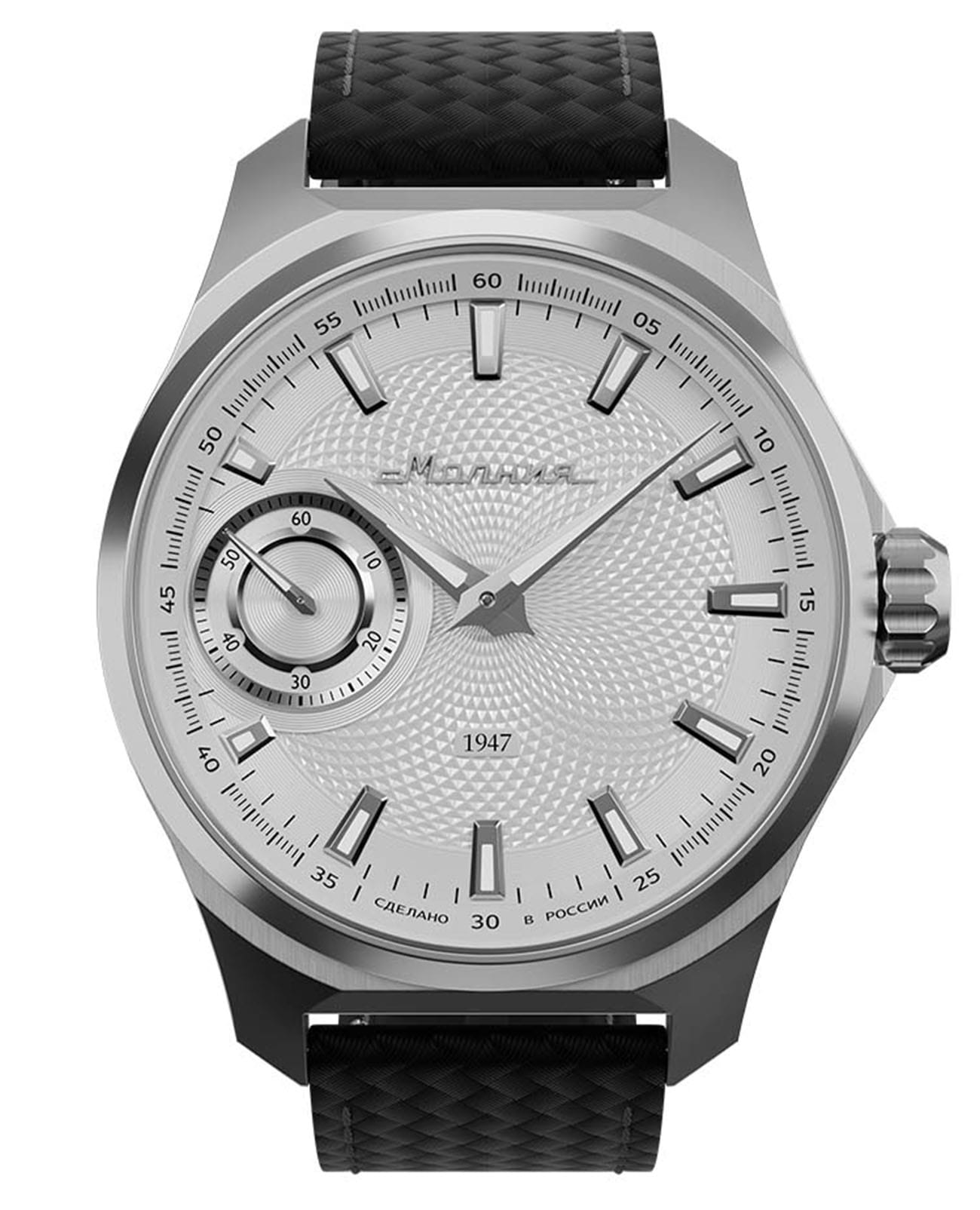 Мужские механические часы с ручным подзаводом — это аксессуар от легендарного бренда «МОЛНИЯ», созданный на Челябинском часовом заводе. Корпус диаметром 42 мм выполнен из нержавеющей стали 316L с зеркальной полировкой. БезельБезельВнешний ободок, закрепляющий стекло. В спортивных часах так называется поворотное кольцо с делениями на циферблате, выполняет роль таймера – замеряет отрезки времени на шкале. Неподвижный безель – элемент декора. Однонаправленно вращающийся безель на дайверских часах позволяет фиксировать моменты погружения и выныривания на поверхность. также выполнен из стали с зеркальной отделкой. Циферблат белого цвета оформлен индексами и стрелками. Малая секундная стрелка вынесена на позицию 9 часов. Стрелки и метки с люминесцентным покрытиемЛюминесцентное покрытиеПозволяет считывать показания времени в темноте. Производители наносят на стрелки, часовые индексы, безель или поверхность циферблата светонакопительный состав, дающий холодное свечение. Super-LumiNova, обеспечивающим хорошую читаемость в темноте. Циферблат защищён сапфировым стекломСапфировое стеклоПрочный и надёжный материал из кристалла сапфира синтетического происхождения, характеризующийся особой твёрдостью и устойчивостью к царапинам и повреждениям. с антибликовым покрытиемАнтибликовое покрытиеСлой оксида металла в 0,13-0,3 микрон, благодаря которому стекло часов не бликует и не отражает свет. Антибликовое покрытие уменьшает отражение света в 10 раз, обеспечивая отличную читаемость показателей циферблата.. Механизм — мануфактурный калибр 3603, собранный вручную, с запасом хода до 40 часов. Прозрачная задняя крышка позволяет наблюдать за работой механизма. Часы оснащены силиконовым ремешком чёрного цвета с классической пряжкой, а также системой быстрой замены. Водонепроницаемость 100 м позволяет использовать часы для плавания и повседневного ношения. Идеальный выбор для тех, кто ценит российское качество и традиции.