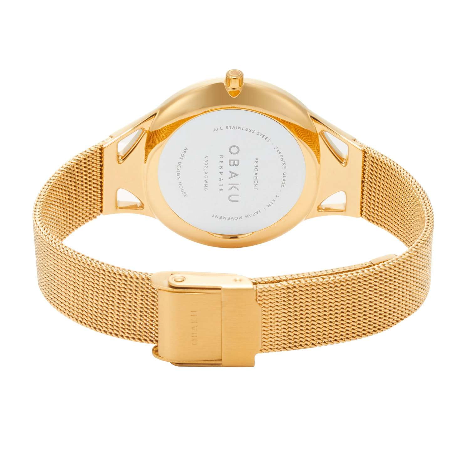 Женские наручные часы Obaku Diamond V302LXGWMG кварцевый механизм с высокой точностью, настоящее воплощение элегантности и утонченности. Их дизайн завораживает с первого взгляда, сочетая в себе классическую лаконичность и современные акценты. Сапфировое стеклоСапфировое стеклоПрочный и надёжный материал из кристалла сапфира синтетического происхождения, характеризующийся особой твёрдостью и устойчивостью к царапинам и повреждениям. защищает циферблат от царапин, обеспечивает отличную читаемость при любом освещении и устойчивое к мелким механическим повреждениям. Корпус выполнен из нержавеющей стали с IP-покрытиемIP-покрытиеМетод ионного напыления. Демонстрирует повышенную устойчивость к истиранию, окислению и химическим веществам. Под воздействием высокого давления и температуры около 1500°C молекулы металла надёжно соединяются с частицами корпуса часов. золотистого цвета идеально сбалансирован и элегантен. Класс водозащиты: 30 метров позволит защитить корпус от случайных брызг или капель дождя. Стальной браслет миланского плетения на раскладном замкеРаскладной замокДанный вариант застежки используется только на часах с металлическим браслетом. Отличительная особенность такого крепления в том, что длина браслета становится универсальной и вы можете самостоятельно отрегулировать нужный вам размер – застежка просто двигается по браслету часов. с IP-покрытиемIP-покрытиеМетод ионного напыления. Демонстрирует повышенную устойчивость к истиранию, окислению и химическим веществам. Под воздействием высокого давления и температуры около 1500°C молекулы металла надёжно соединяются с частицами корпуса часов.. Часы украшены бриллиантом на 12 часов, метки в виде точек. Центральные часовая и минутная стрелки. Obaku Diamond – это не просто аксессуар, это заявление о вашем безупречном вкусе и стремлении к совершенству.