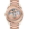 Omega Seamaster Aqua Terra выполнены в симметричном корпусе из полированного 18K Sedna™ золота с завинчивающейся задней крышкой, украшенной волновым узором. Безель инкрустирован бриллиантами, что добавляет модели роскошный акцент. Циферблат дополнен окошком даты на 6 часах, окаймлённым кольцом из 18K Sedna™ золота. Поверхность циферблата обработана методом CVD и имеет песочный оттенок с серыми вставками. Стрелки и метки выполнены из 18K Sedna™ золота и оснащены люминесцентным покрытиемЛюминесцентное покрытиеПозволяет считывать показания времени в темноте. Производители наносят на стрелки, часовые индексы, безель или поверхность циферблата светонакопительный состав, дающий холодное свечение. Super-LumiNova для лучшей читаемости в темноте. Индексы выполнены в форме корпусов парусников — деталь, подчёркивающая морское наследие коллекции. Калибр Omega 8801 сертифицирован как Master Chronometer — гарантия высочайшей точности и устойчивости к магнитным полям. Запас хода составляет 55 часов. Защиту циферблата обеспечивает сапфировое стеклоСапфировое стеклоПрочный и надёжный материал из кристалла сапфира синтетического происхождения, характеризующийся особой твёрдостью и устойчивостью к царапинам и повреждениям. с антибликовым покрытиемАнтибликовое покрытиеСлой оксида металла в 0,13-0,3 микрон, благодаря которому стекло часов не бликует и не отражает свет. Антибликовое покрытие уменьшает отражение света в 10 раз, обеспечивая отличную читаемость показателей циферблата. с обеих сторон. Водозащита позволяет использовать часы в воде без риска повреждения. Часы установлены на браслет из 18K Sedna™ золота с застёжкой-бабочкой с кнопкамиЗастёжка "бабочка"Такой вид застёжки дополняется предохранителями, помогающими избежать случайного раскрытия браслета. Обладают изящным исполнением. и закруглёнными звеньями. Это сочетание премиального качества, технологичности и классического дизайна.