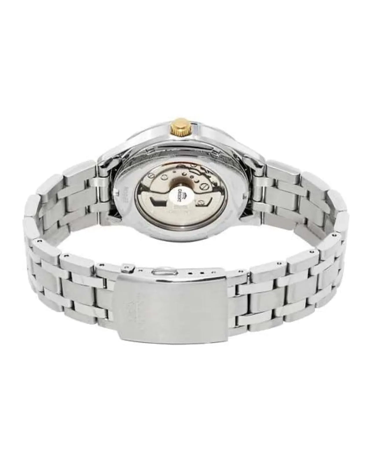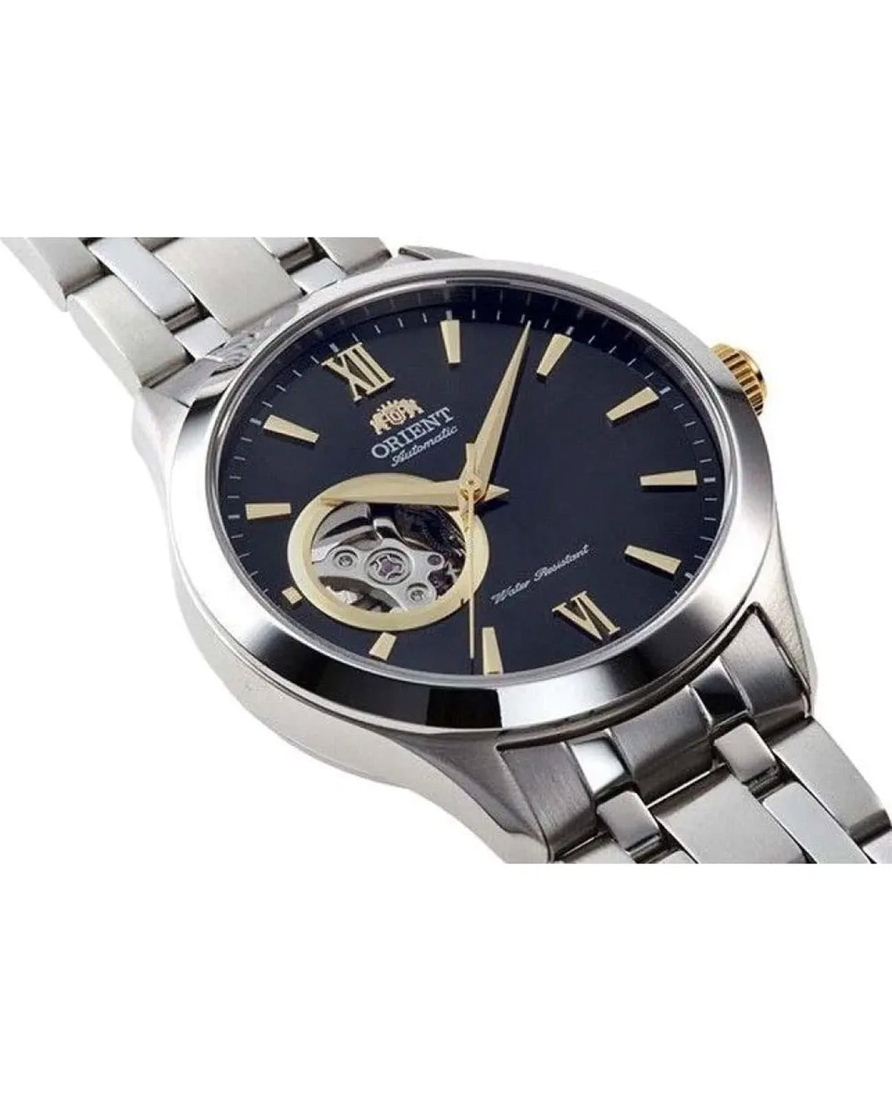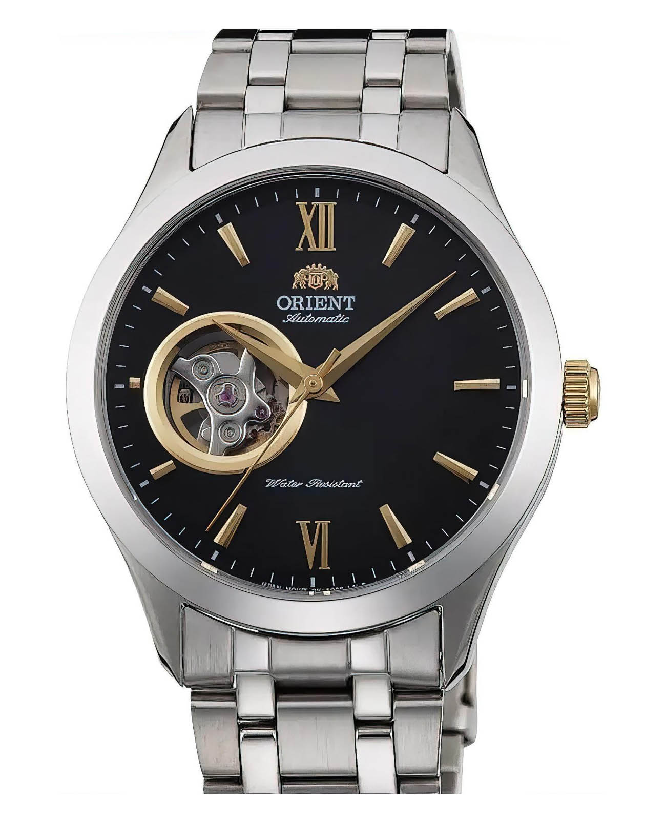 Мужские механические часы с автоподзаводом Orient Automatic AG03002B. Минеральное стеклоМинеральное стеклоМинеральное стекло представляет собой искусственно выращенный минерал кварца. Такое стекло отличается особой устойчивостью к повреждениям и царапинам. Уступает по некоторым качествам сапфировому стеклу. устойчивое к появлению царапин, обладающее высокой прозрачностью. Корпус из нержавеющей стали. Скелетон в положении 9 часов. Прозрачная задняя крышка. Класс водозащиты: 50 метров, позволит защитить корпус от случайных брызг или капель дождя. Стальной браслет на раскладной застёжкеРаскладная застёжкаТакой тип застёжки используется только на браслетах из металла. Она никогда не раскрывается полностью, происходит разделение на 2 и более частей. Раскладывающая застёжка снизит вероятность потери часов к минимуму..