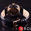 Лаконичный тёмный циферблат с серебристыми стрелками и индексами гармонично сочетается с коричневым ремешком из натуральной кожи, часы стоит выбрать в качестве варианта для делового мужчины. Калибр собственного производства заводится от движений руки владельца, позволяя забыть о необходимости постоянного завода. Минеральное стекло устойчиво к образованию царапин. PVD-покрытиеPVDУльтратонкое покрытие наносится в технике вакуумного напыления, сочетает в себе нитрид титана особой прочности со слоем золота или оксида хрома. Несёт в себе декоративную или защитную функцию. "розовое золото". Водостойкость 50 метров. Прозрачная задняя крышка корпуса. Апертура даты. Габариты: 41,2 x 41,2 x 12 мм.