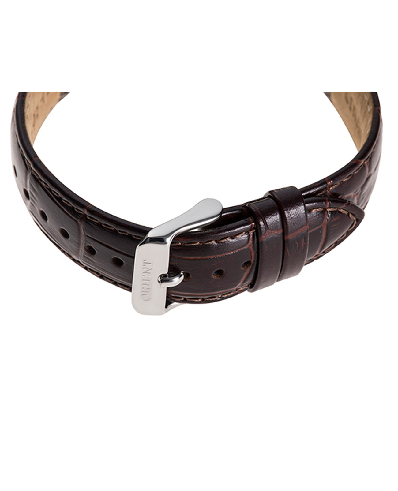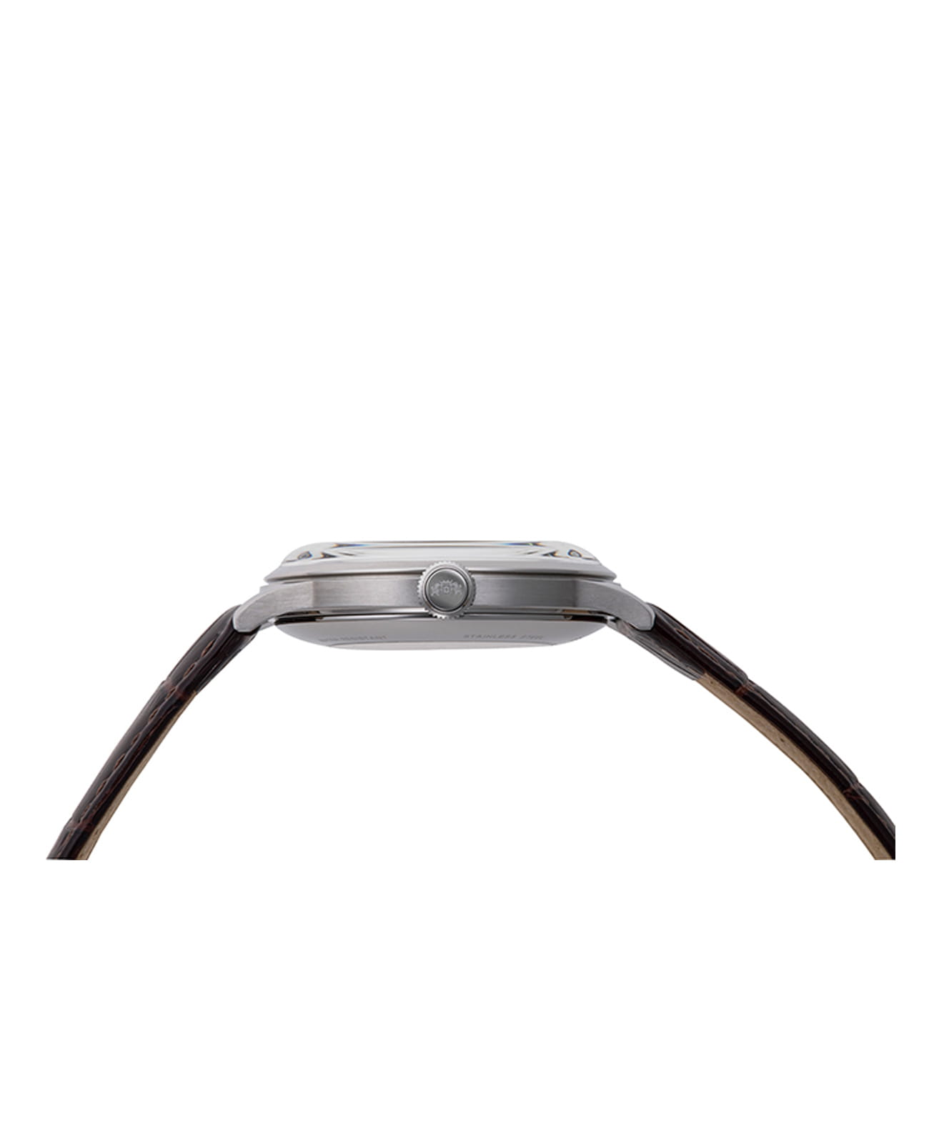Часы дополнены кожаным ремешком коричневого цвета, который подчеркивает их классический стиль. Водонепроницаемость до 30 метров позволяет использовать их в повседневных условиях, например, при мытье рук или под дождем.