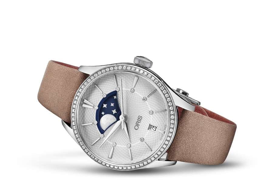 Oris 01 763 7723 4951-07 5 18 33FC Artelier – это элегантные часы, сочетающие в себе классический дизайн и современную функциональность. Корпус из нержавеющей стали диаметром 36 мм идеально подходит для тех, кто ценит утонченность и стиль. Сапфировое стеклоСапфировое стеклоПрочный и надёжный материал из кристалла сапфира синтетического происхождения, характеризующийся особой твёрдостью и устойчивостью к царапинам и повреждениям. с антибликовым покрытием защищает циферблат от царапин и обеспечивает отличную читаемость при любом освещении. Кожаный ремешок с раскладной застёжкойРаскладная застёжкаТакой тип застёжки используется только на браслетах из металла. Она никогда не раскрывается полностью, происходит разделение на 2 и более частей. Раскладывающая застёжка снизит вероятность потери часов к минимуму. идеально дополняет дизайн часов, обеспечивая комфортное ношение. БезельБезельВнешний ободок, закрепляющий стекло. В спортивных часах так называется поворотное кольцо с делениями на циферблате, выполняет роль таймера – замеряет отрезки времени на шкале. Неподвижный безель – элемент декора. Однонаправленно вращающийся безель на дайверских часах позволяет фиксировать моменты погружения и выныривания на поверхность. инкрустирован 72 бриллиантами Top Wesselton G, VS 1 (0,576 карата). Отображение даты в положении «6 часов». Автоматический механизм Oris Calibre 763 на базе SW 220-1. Часы обладают водонепроницаемостью в 5 бар (50 метров). Эти механические наручные часы станут вашим верным спутником в любых приключениях, сочетая в себе функциональность и элегантный дизайн. Идеальный выбор для тех, кто ценит качество и долговечность.