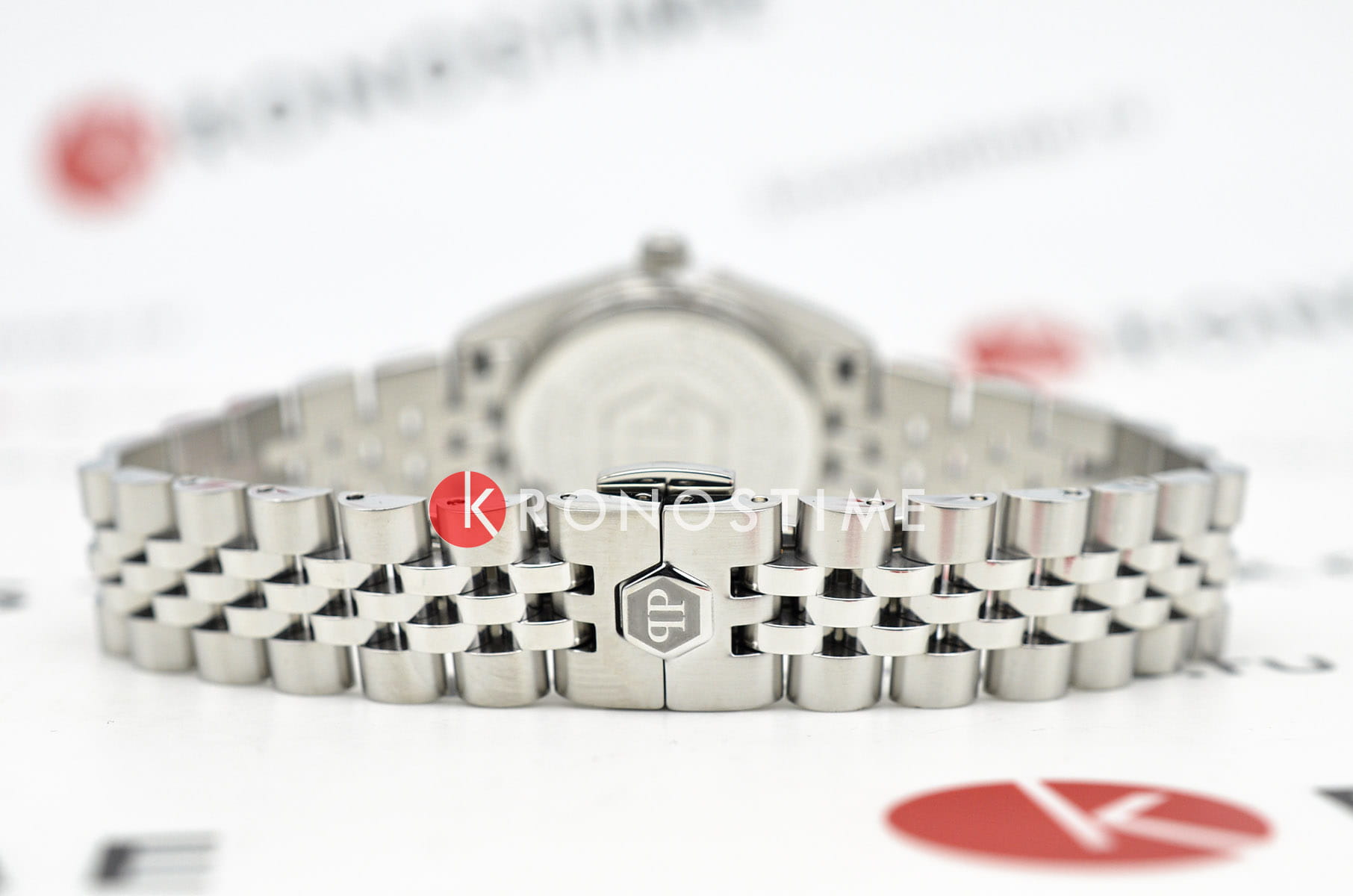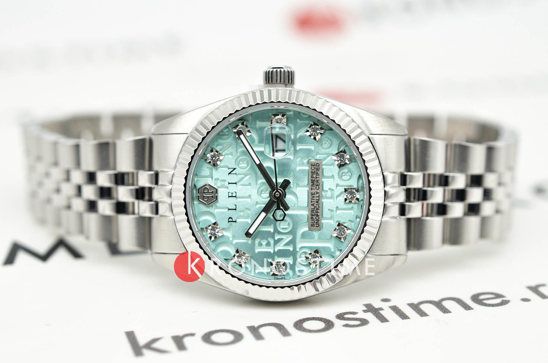 Philipp Plein DATE SUPERLATIVE PWNFA0225 - дерзкое заявление любви к роскоши и бунтарскому стилю. Диаметр круглого корпуса из прочной нержавеющей стали равен 28 мм. Стальной браслет на застёжке «бабочка» с кнопкамиЗастёжка "бабочка"Такой вид застёжки дополняется предохранителями, помогающими избежать случайного раскрытия браслета. Обладают изящным исполнением. обеспечивает надёжную фиксацию и комфортное ношение. Метки в виде кристаллов Preciosa. Минеральное стеклоМинеральное стеклоМинеральное стекло представляет собой искусственно выращенный минерал кварца. Такое стекло отличается особой устойчивостью к повреждениям и царапинам. Уступает по некоторым качествам сапфировому стеклу. защищает циферблат от царапин. Люминесцентное покрытиеЛюминесцентное покрытиеПозволяет считывать показания времени в темноте. Производители наносят на стрелки, часовые индексы, безель или поверхность циферблата светонакопительный состав, дающий холодное свечение. стрелок и меток позволит следить за временем даже в полной темноте. Граненая заводная головка. Влагозащита: 50 метров, позволит защитить корпус от случайных брызг или капель дождя. Идеальный аксессуар для тех, кто ценит индивидуальность и не боится выделяться из толпы.