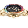 Philipp Plein THE $PECTRE LADY PWTAA1224 - дерзкое заявление любви к роскоши и бунтарскому стилю. Диаметр корпуса из прочной нержавеющей стали с PVD-покрытиемPVDУльтратонкое покрытие наносится в технике вакуумного напыления, сочетает в себе нитрид титана особой прочности со слоем золота или оксида хрома. Несёт в себе декоративную или защитную функцию. равен 38 мм. Стальной браслет на застёжке-бабочке с кнопкамиЗастёжка "бабочка"Такой вид застёжки дополняется предохранителями, помогающими избежать случайного раскрытия браслета. Обладают изящным исполнением. обеспечивает надёжную фиксацию и комфортное ношение. Минеральное стеклоМинеральное стеклоМинеральное стекло представляет собой искусственно выращенный минерал кварца. Такое стекло отличается особой устойчивостью к повреждениям и царапинам. Уступает по некоторым качествам сапфировому стеклу. защищает циферблат от царапин. Люминесцентное покрытиеЛюминесцентное покрытиеПозволяет считывать показания времени в темноте. Производители наносят на стрелки, часовые индексы, безель или поверхность циферблата светонакопительный состав, дающий холодное свечение. стрелок и меток позволит следить за временем даже в полной темноте. БезельБезельВнешний ободок, закрепляющий стекло. В спортивных часах так называется поворотное кольцо с делениями на циферблате, выполняет роль таймера – замеряет отрезки времени на шкале. Неподвижный безель – элемент декора. Однонаправленно вращающийся безель на дайверских часах позволяет фиксировать моменты погружения и выныривания на поверхность. инкрустирован кристаллами Preciosa. Влагозащита: 50 метров, позволит защитить корпус от случайных брызг или капель дождя. Идеальный аксессуар для тех, кто ценит индивидуальность и не боится выделяться из толпы.