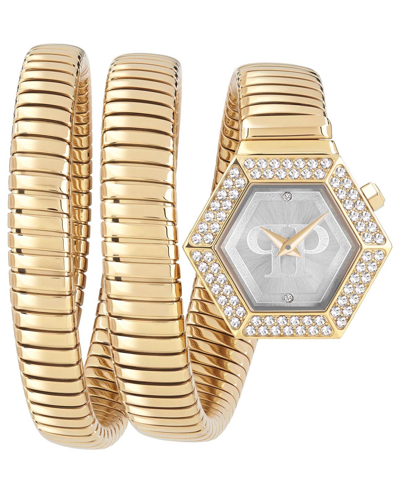 Яркие женские часы Philipp Plein Snake Hexagon PWZAA0423 с минеральным стекломМинеральное стеклоМинеральное стекло представляет собой искусственно выращенный минерал кварца. Такое стекло отличается особой устойчивостью к повреждениям и царапинам. Уступает по некоторым качествам сапфировому стеклу.. Символ неотразимого гламура и роскоши. Соблазнительное воплощение легендарной утонченности, такой аксессуар - неотразимый символ, который вселяет в женщин уверенность и силу. Авангардная геометрия, чувственные изгибы, изысканная привлекательность и драгоценные мысли - все это сделает вас непревзойденной. Корпус изготовлен из стали с IP-покрытиемIP-покрытиеМетод ионного напыления. Демонстрирует повышенную устойчивость к истиранию, окислению и химическим веществам. Под воздействием высокого давления и температуры около 1500°C молекулы металла надёжно соединяются с частицами корпуса часов.. Неподвижный безель украшен кристаллами.
