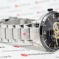 Мужские механические часы с автоподзаводом Pierre Lannier Trio 331H131. Минеральное стеклоМинеральное стеклоМинеральное стекло представляет собой искусственно выращенный минерал кварца. Такое стекло отличается особой устойчивостью к повреждениям и царапинам. Уступает по некоторым качествам сапфировому стеклу. устойчивое к мелким механическим повреждениям. Центральные часовая и минутная стрелки, секундная стрелка вынесена в малый циферблат. 12/24х часовой формат времени. Черный скелетонизированный циферблат. Корпус выполнен из нержавеющей стали с IP-покрытиемIP-покрытиеМетод ионного напыления. Демонстрирует повышенную устойчивость к истиранию, окислению и химическим веществам. Под воздействием высокого давления и температуры около 1500°C молекулы металла надёжно соединяются с частицами корпуса часов.. Водостойкость: 50 метров, позволит защитить корпус от случайных брызг или капель дождя. Стальной браслет на раскладной застёжкеРаскладная застёжкаТакой тип застёжки используется только на браслетах из металла. Она никогда не раскрывается полностью, происходит разделение на 2 и более частей. Раскладывающая застёжка снизит вероятность потери часов к минимуму.. Стрелки с люминесцентным покрытиемЛюминесцентное покрытиеПозволяет считывать показания времени в темноте. Производители наносят на стрелки, часовые индексы, безель или поверхность циферблата светонакопительный состав, дающий холодное свечение.. Диаметр корпуса составляет 42 мм, толщина 13,55 мм.