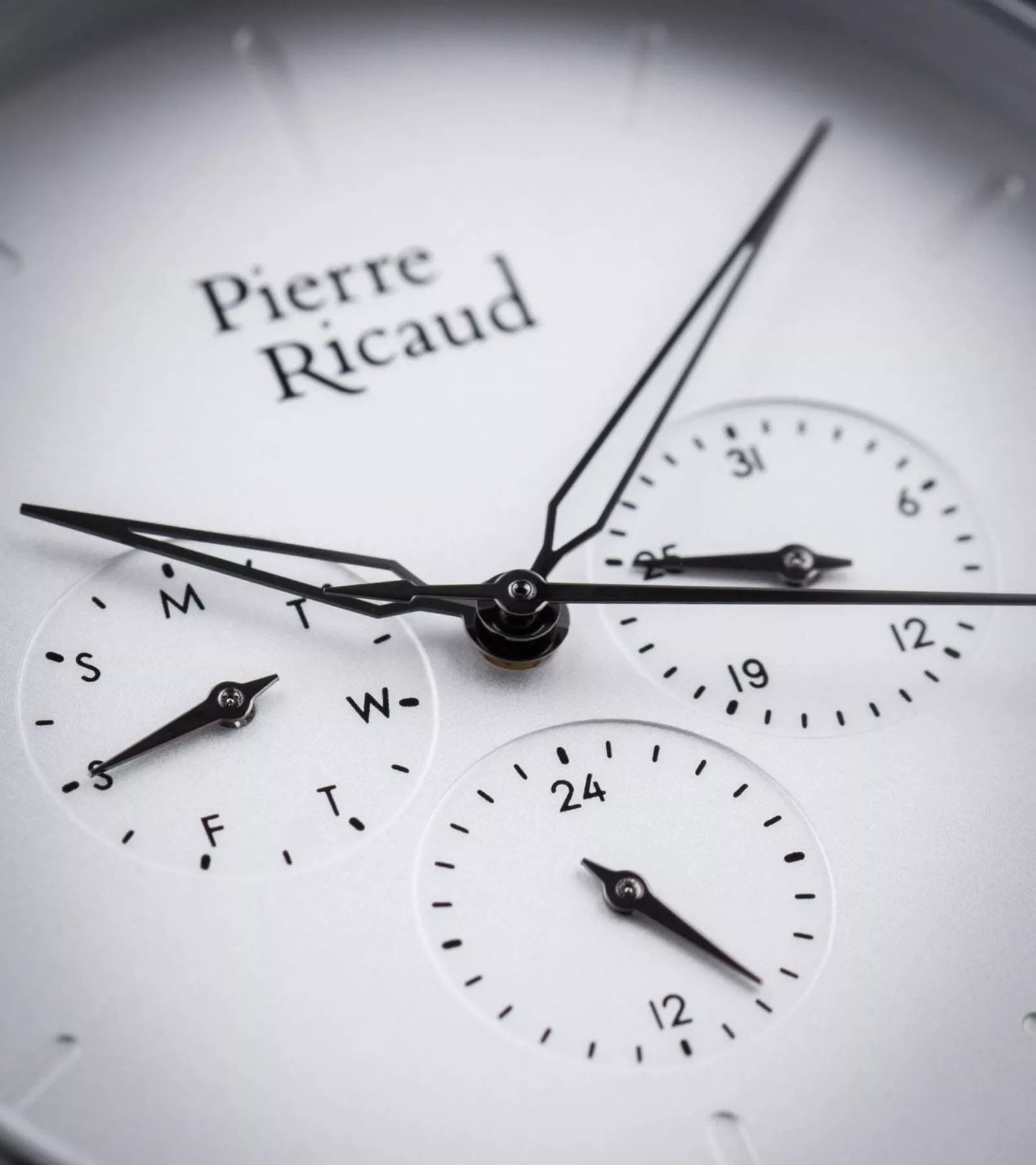 Мужские часы с минеральным стекломМинеральное стеклоМинеральное стекло представляет собой искусственно выращенный минерал кварца. Такое стекло отличается особой устойчивостью к повреждениям и царапинам. Уступает по некоторым качествам сапфировому стеклу. Pierre Ricaud P97169.5113QF, кварцевый механизм с высокой точностью. Класс водозащиты: 50 метров, позволит защитить корпус от случайных брызг или капель дождя. Корпус часов изготовлен из стали. Стальной браслет на раскладной застёжкеРаскладная застёжкаТакой тип застёжки используется только на браслетах из металла. Она никогда не раскрывается полностью, происходит разделение на 2 и более частей. Раскладывающая застёжка снизит вероятность потери часов к минимуму..
