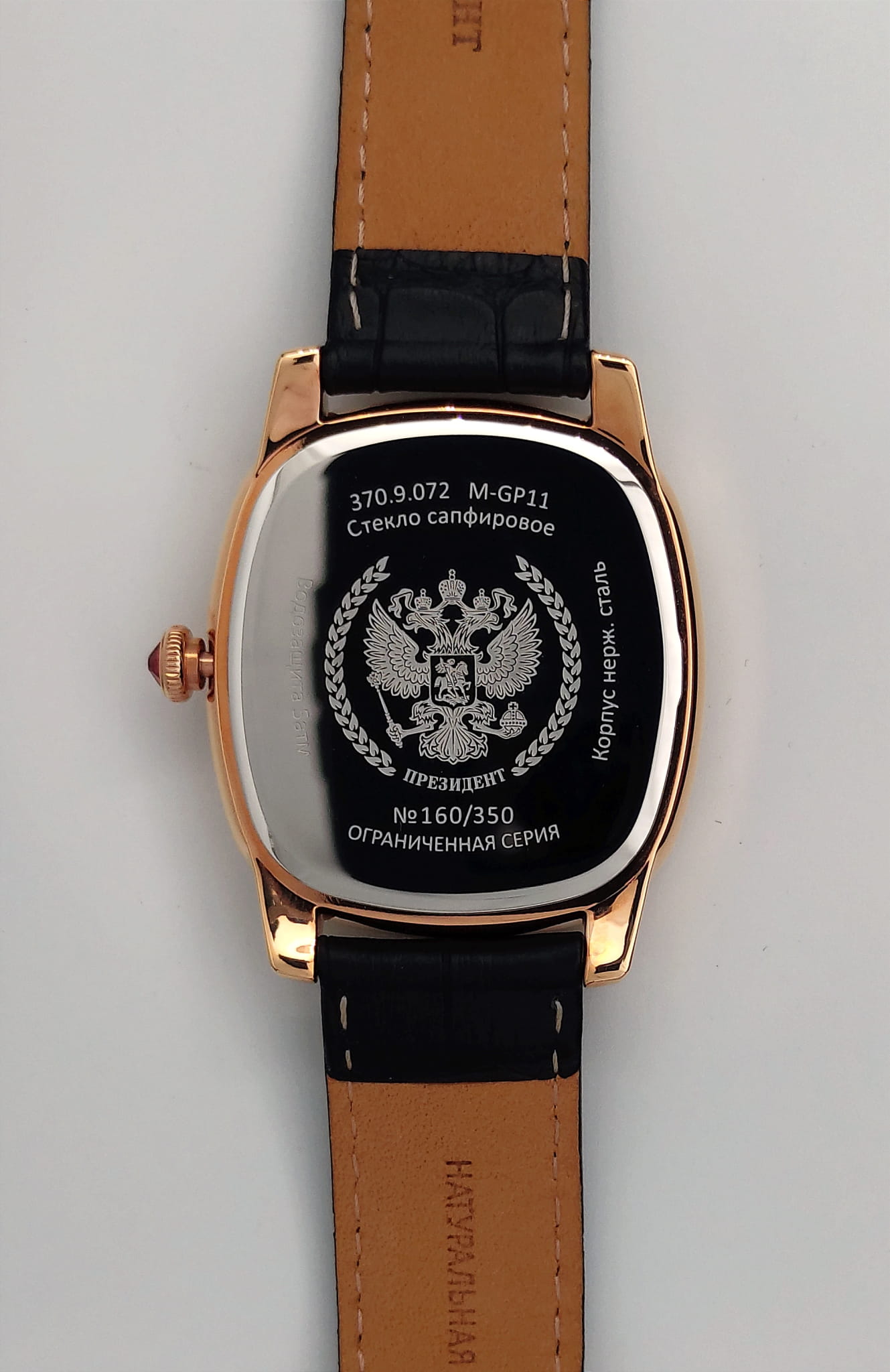 Часы «Президент» модели 3709072 — это мужские кварцевые наручные часы, сочетающие элегантный дизайн и надёжность. Механизм: японский кварцевый механизм Miyota GP11, обеспечивающий высокую точность. Функции: часы, минуты, секунды и дата. Корпус: из нержавеющей стали с PVD-покрытиемPVDУльтратонкое покрытие наносится в технике вакуумного напыления, сочетает в себе нитрид титана особой прочности со слоем золота или оксида хрома. Несёт в себе декоративную или защитную функцию. цвета розового золота, размером 41 мм х 38 мм, толщиной 9,8 мм. Стекло: сапфировоеСапфировое стеклоПрочный и надёжный материал из кристалла сапфира синтетического происхождения, характеризующийся особой твёрдостью и устойчивостью к царапинам и повреждениям., устойчивое к царапинам. Водонепроницаемость: 5 ATM (50 метров), подходящая для повседневного использования. Ремешок: кожаный, шириной 20 мм, с классической застёжкой. Эти часы являются идеальным выбором для деловых людей, ценящих стиль и функциональность.