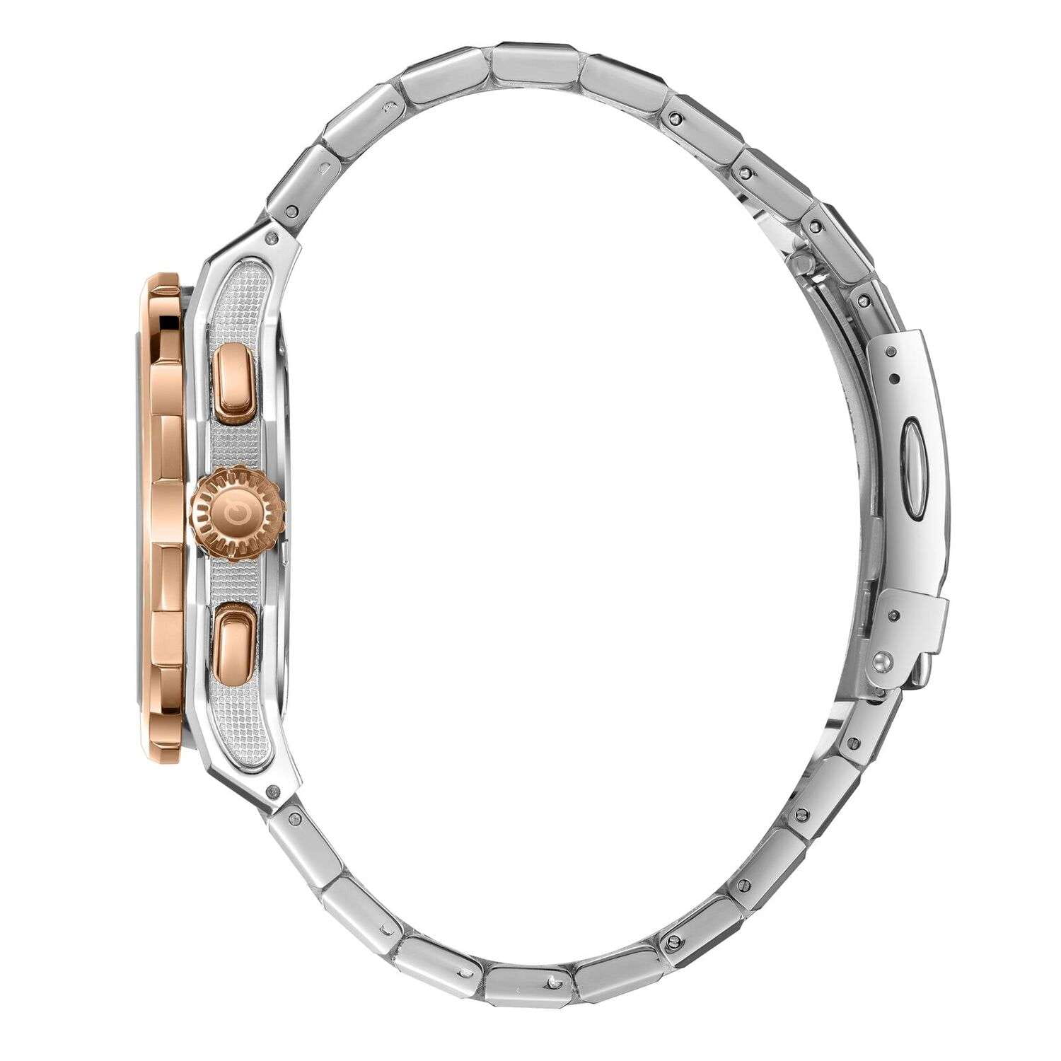 Мужские кварцевые часы Quantum HNG1081.530 из коллекции Hunter — функциональный хронограф в классическом круглом корпусе размером 46 мм из нержавеющей стали. БезельБезельВнешний ободок, закрепляющий стекло. В спортивных часах так называется поворотное кольцо с делениями на циферблате, выполняет роль таймера – замеряет отрезки времени на шкале. Неподвижный безель – элемент декора. Однонаправленно вращающийся безель на дайверских часах позволяет фиксировать моменты погружения и выныривания на поверхность. с PVD-покрытиемPVDУльтратонкое покрытие наносится в технике вакуумного напыления, сочетает в себе нитрид титана особой прочности со слоем золота или оксида хрома. Несёт в себе декоративную или защитную функцию.. Циферблат оснащён окошком даты, 24-часовым форматом времени на малом циферблате и функцией хронографаХронографФункция позволяет измерять отрезки времени с особой точностью: часы, минуты, секунды. Верным признаком хронографа является наличие на циферблате 3 дополнительных окошек-счётчиков. с секундомером. Стекло — минеральноеМинеральное стеклоМинеральное стекло представляет собой искусственно выращенный минерал кварца. Такое стекло отличается особой устойчивостью к повреждениям и царапинам. Уступает по некоторым качествам сапфировому стеклу. с антибликовым покрытием. Стрелки с люминесцентным покрытиемЛюминесцентное покрытиеПозволяет считывать показания времени в темноте. Производители наносят на стрелки, часовые индексы, безель или поверхность циферблата светонакопительный состав, дающий холодное свечение.. Водонепроницаемость 100 м. Браслет — стальной на раскладной застёжкеРаскладная застёжкаТакой тип застёжки используется только на браслетах из металла. Она никогда не раскрывается полностью, происходит разделение на 2 и более частей. Раскладывающая застёжка снизит вероятность потери часов к минимуму.. Идеальный выбор для тех, кто ценит турецкий дизайн и повседневную практичность.