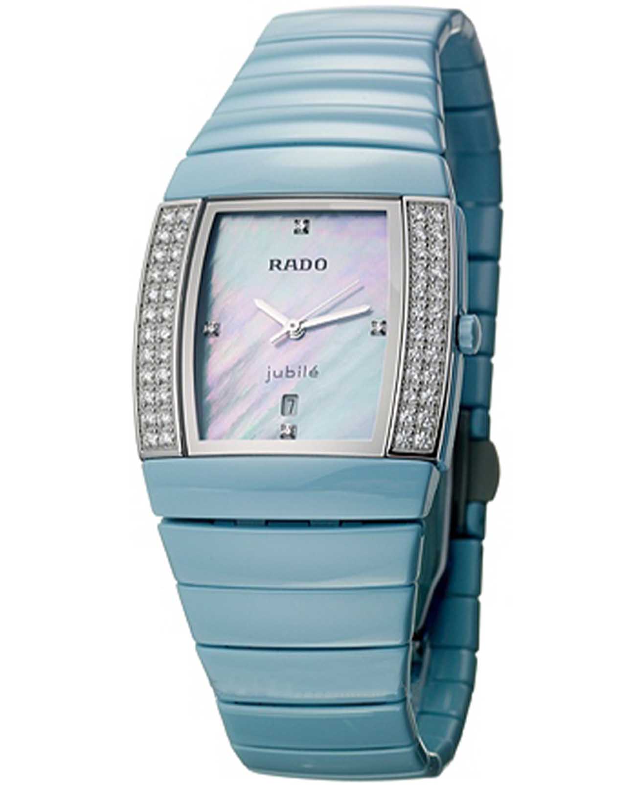 Часы Rado Sintra R13666912, произведение искусства и технологическое чудо, станут прекрасным дополнением к коллекции. Эти швейцарские часы оснащены кварцевым механизмом с указателем даты и тремя стрелками, заключенным в корпус из нержавеющей стали.  Браслет изготовлен из высокотехнологичной керамикиВысокотехнологичная керамикаИнновационный запатентованный Rado материал с гладкой или матовой поверхностью. Керамика за счёт кристаллической структуры обладает повышенной устойчивостью от возникновения царапин. Материал способен принимать температуру тела человека, обеспечивая невероятный комфорт при ношении. с раскладной застёжкойРаскладная застёжкаТакой тип застёжки используется только на браслетах из металла. Она никогда не раскрывается полностью, происходит разделение на 2 и более частей. Раскладывающая застёжка снизит вероятность потери часов к минимуму.. Корпус украшен 48 бриллиантами, циферблат 4 бриллианта. Сапфировое стеклоСапфировое стеклоПрочный и надёжный материал из кристалла сапфира синтетического происхождения, характеризующийся особой твёрдостью и устойчивостью к царапинам и повреждениям. устойчивое к появлению царапин, обладающее высокой прозрачностью. Класс водозащиты: 30 метров, позволит защитить корпус от случайных брызг или капель дождя.