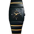 Часы Rado Sintra R13726709, произведение искусства и технологическое чудо, станут прекрасным дополнением к коллекции. Эти швейцарские часы оснащены кварцевым механизмом. Корпус изготовлен из высокотехнологичной керамикиВысокотехнологичная керамикаИнновационный запатентованный Rado материал с гладкой или матовой поверхностью. Керамика за счёт кристаллической структуры обладает повышенной устойчивостью от возникновения царапин. Материал способен принимать температуру тела человека, обеспечивая невероятный комфорт при ношении.. Браслет изготовлен из керамики со вставками из 18-каратного золота18-каратное золотоОбозначение по каратной системе пробирования, оно показывает, сколько драгоценного металла содержится в изделии. 18 карат - в составе 75% чистого золота, соответствует 750 пробе.